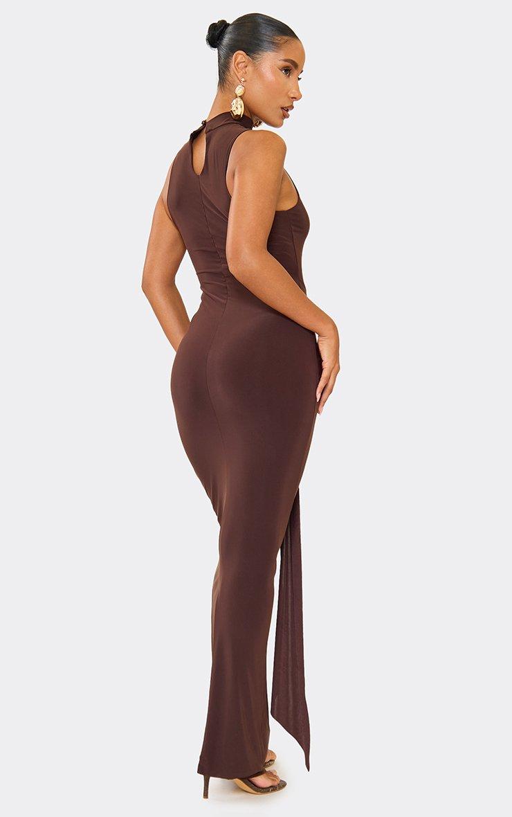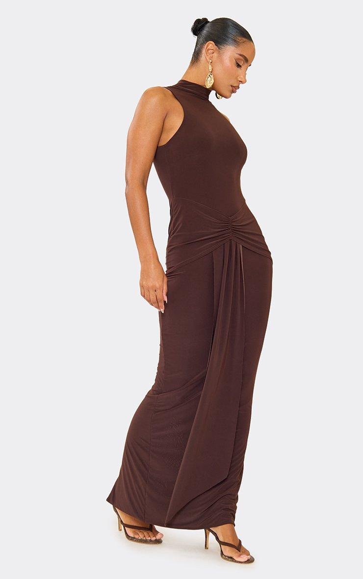 High Neck Sleeveless Drape Detail Maxi Dress In Chocolate Brown