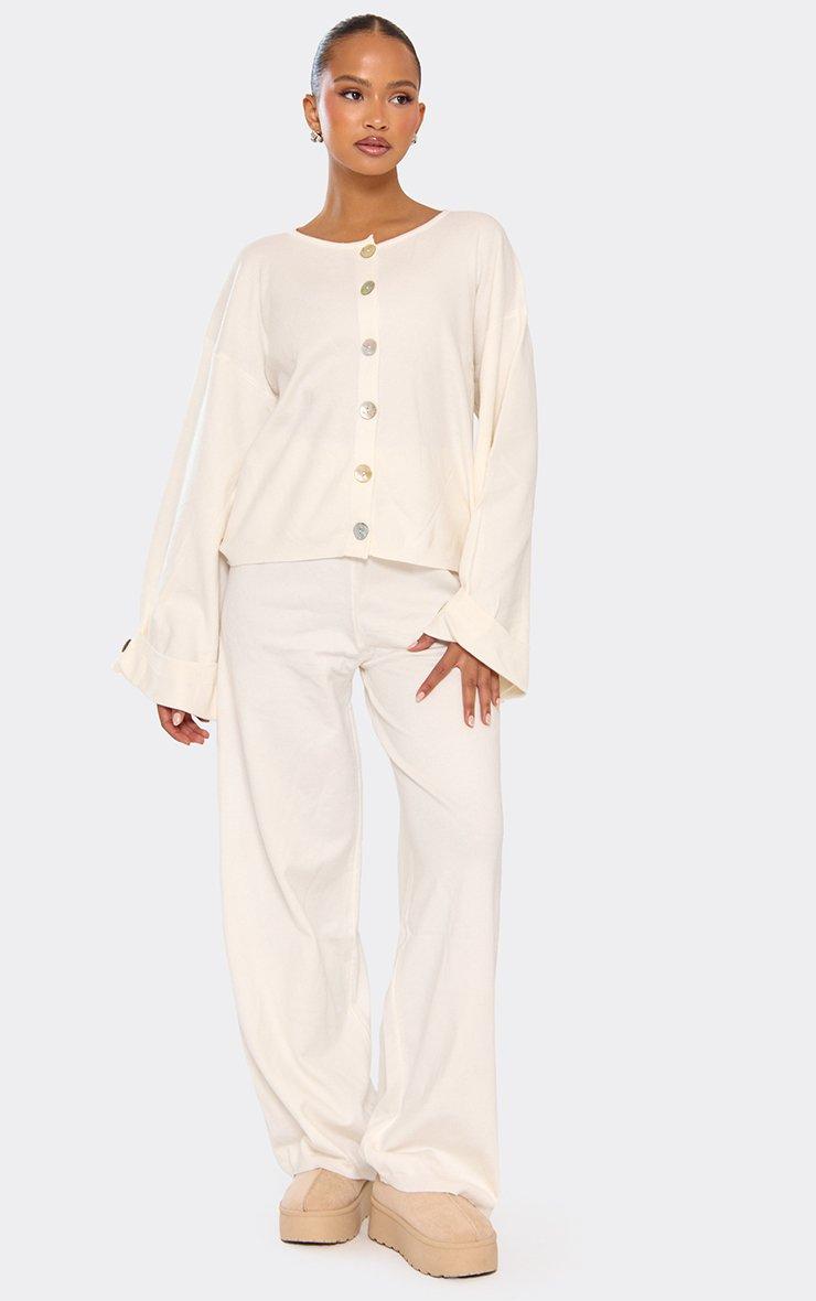 Mid Rise Wide Leg Trousers In Beige Compact Knit