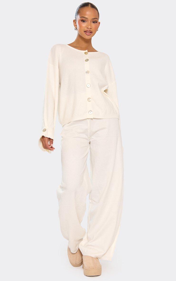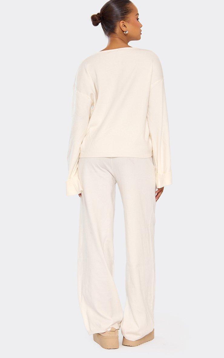 High Waist Straight Leg Trousers In Cream Knit