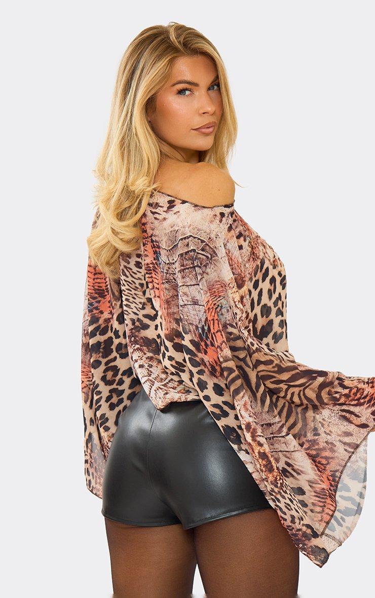 Cape Top In Multi Leopard Print Mesh