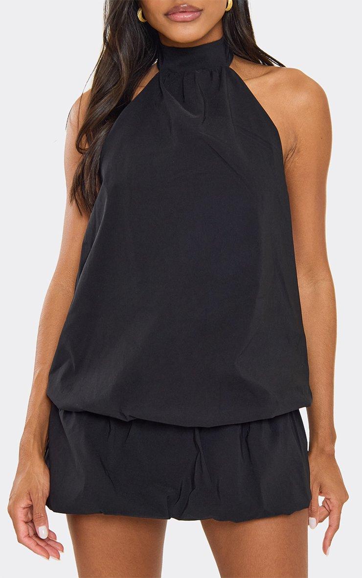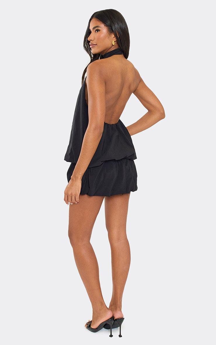 High Neck Open Back Layered Frill Hem Mini Dress In Black