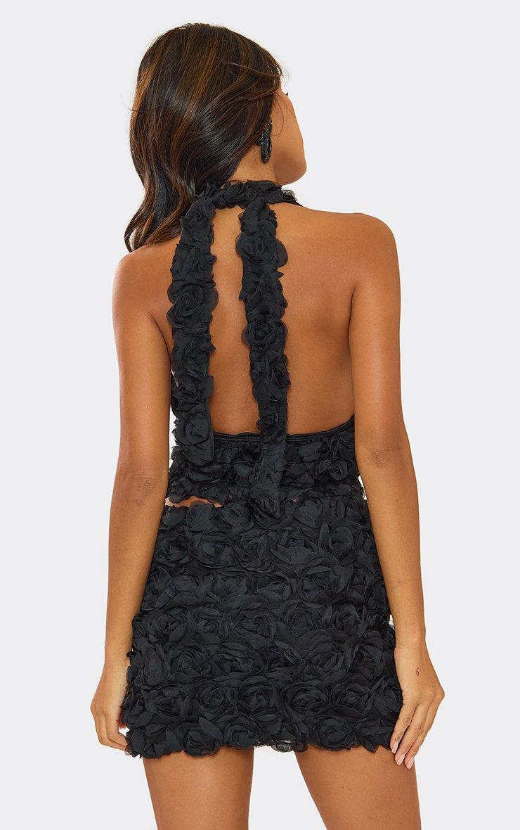 Halterneck Top And Mini Skirt Co-Ord Set In Black Textured Floral