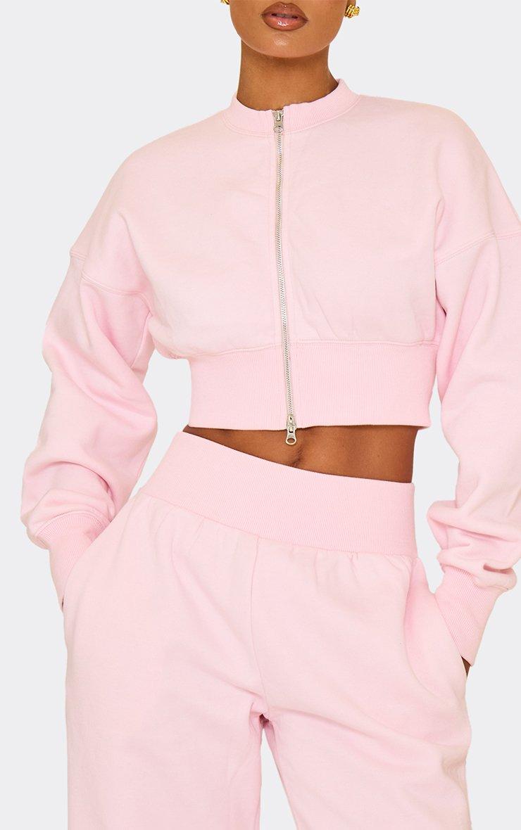 Long Sleeve Cinched Waist Sweatshirt In Pink