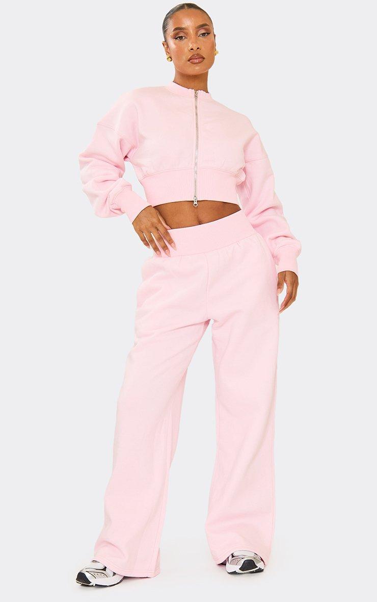 Mid Rise Pocket Detail Wide Leg Joggers In Light Grey Marl