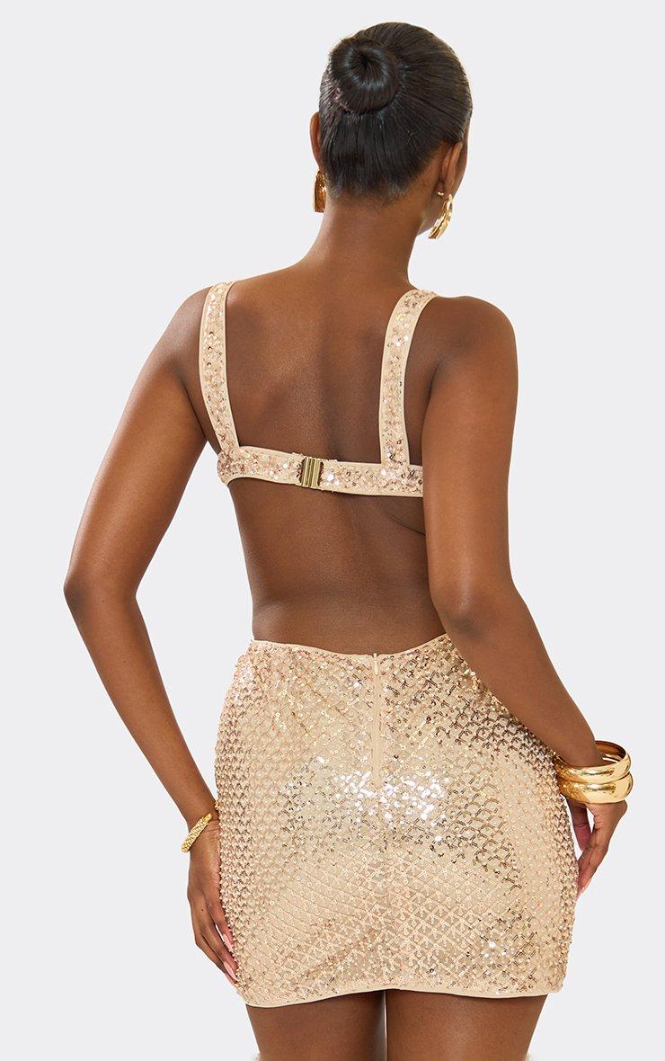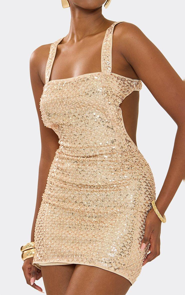 Square Neck Open Back Detail Mini Dress In Gold Sequin
