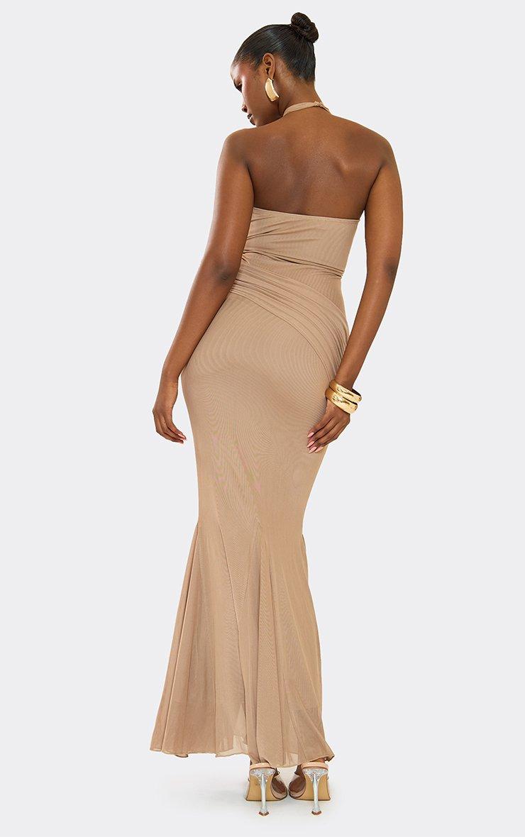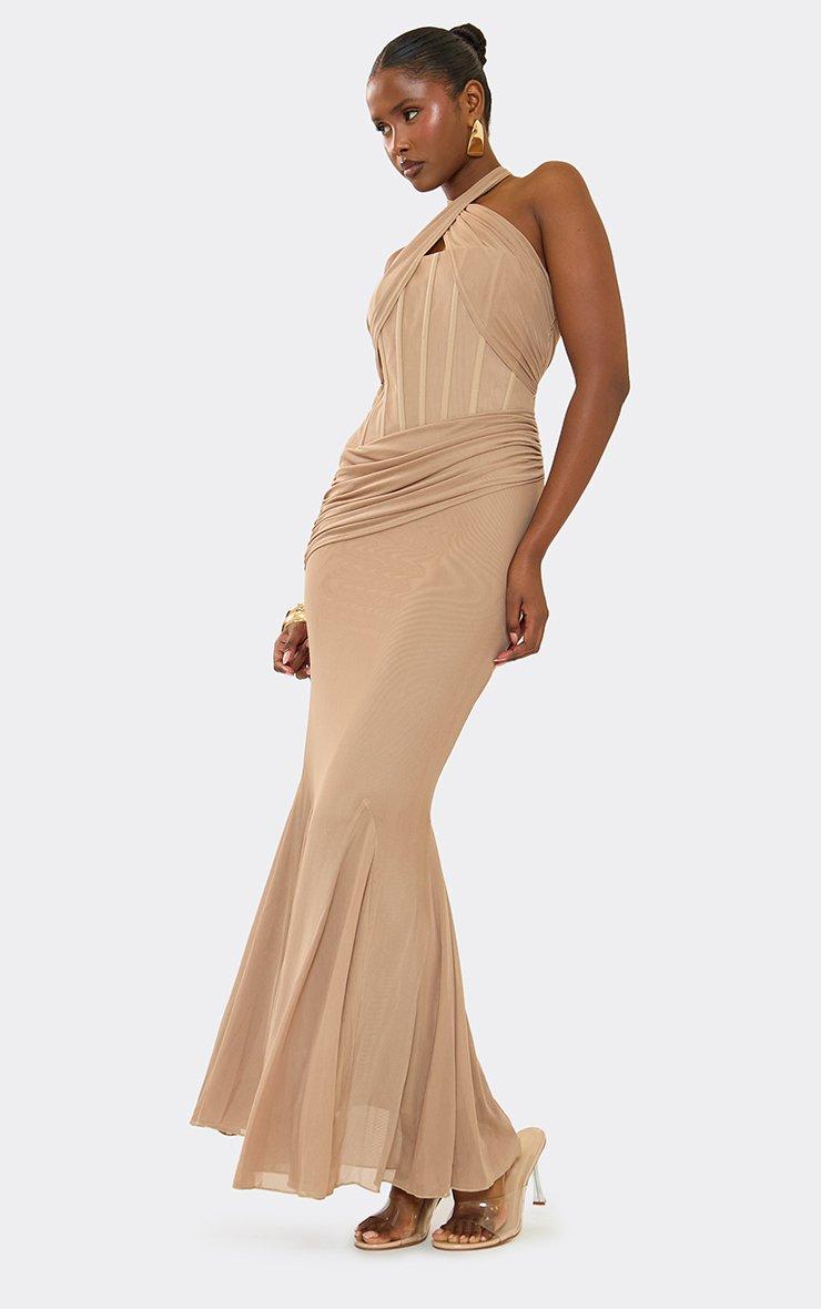 Cross Strap Boning Detail Maxi Dress In Mocha