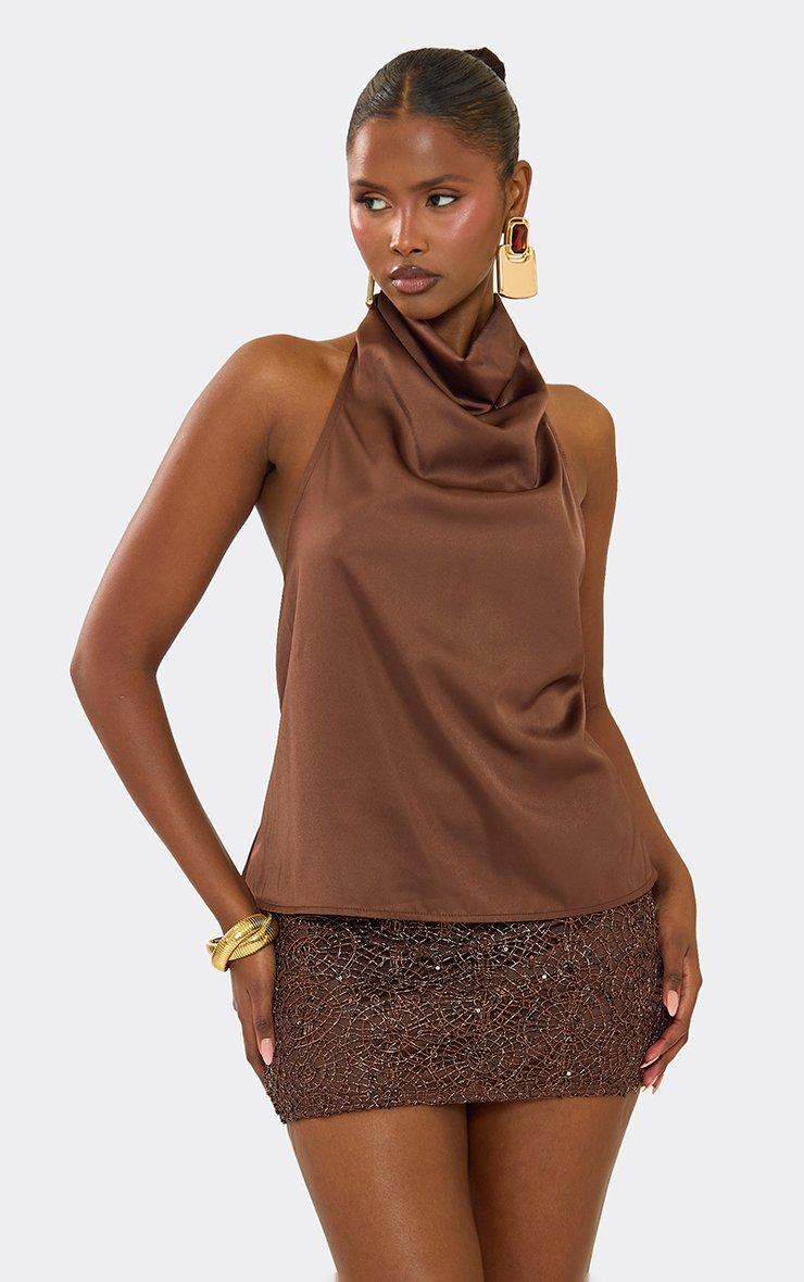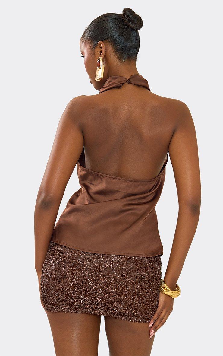 Bandeau Hook And Eye Corset Top In Chocolate Brown Satin