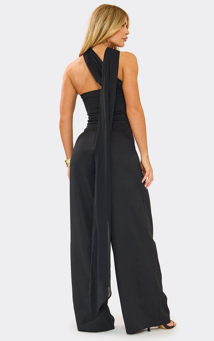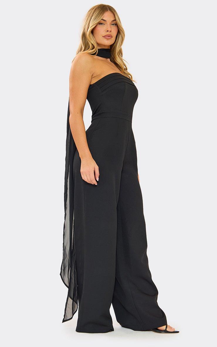 Scarf Detail Bandeau Tailored Jumpsuit In Black
