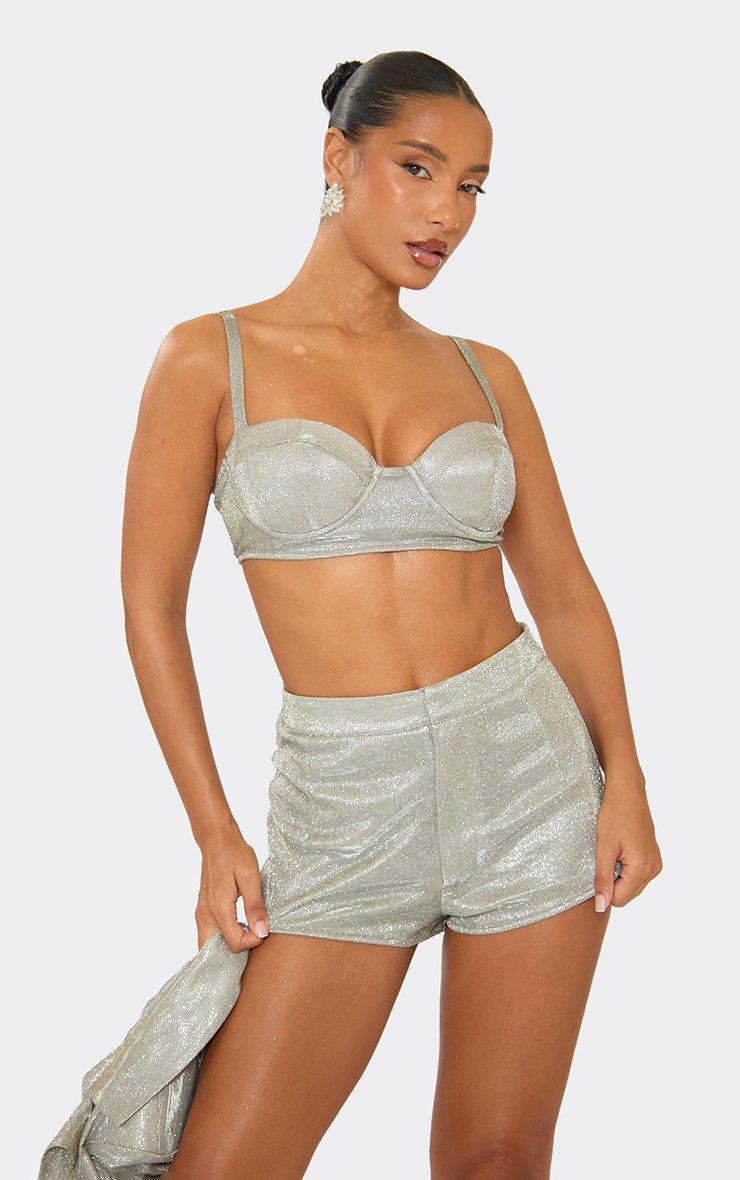 Strappy Underwired Bralet Top In Silver Glitter