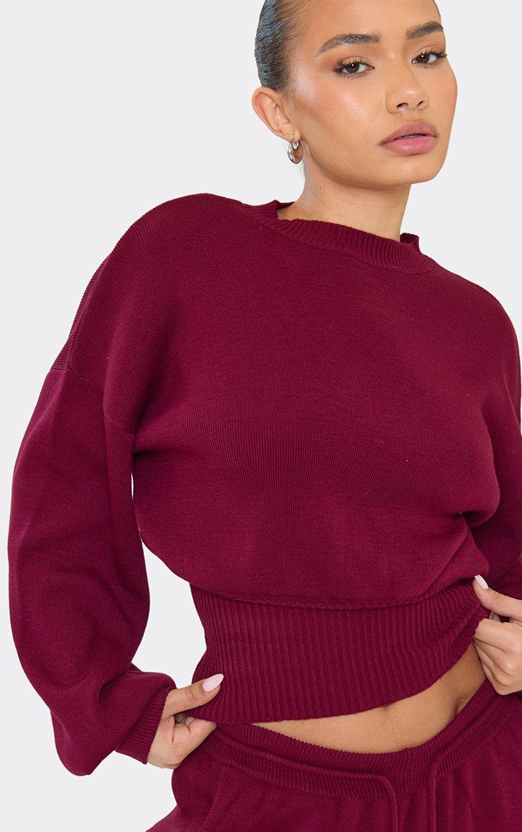 Long Sleeve Crew Neck Ego Graphic Oversized Jumper In Burgundy Knit