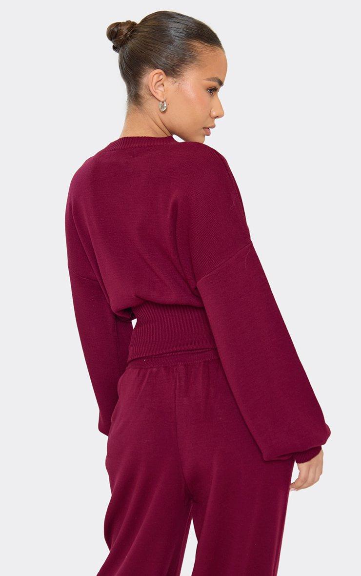 Balloon Sleeve Button Down Cardigan In Burgundy Knit