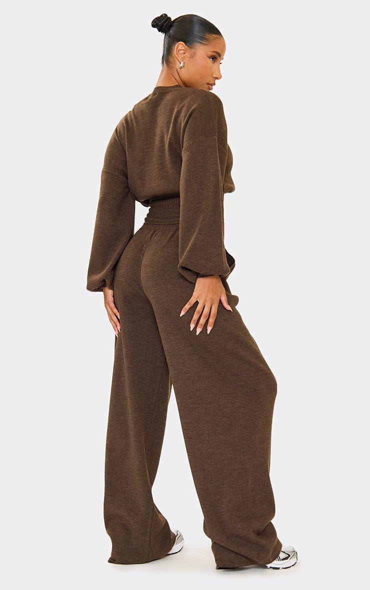 High Waist Wide Leg Trousers In Brown Premium Knit