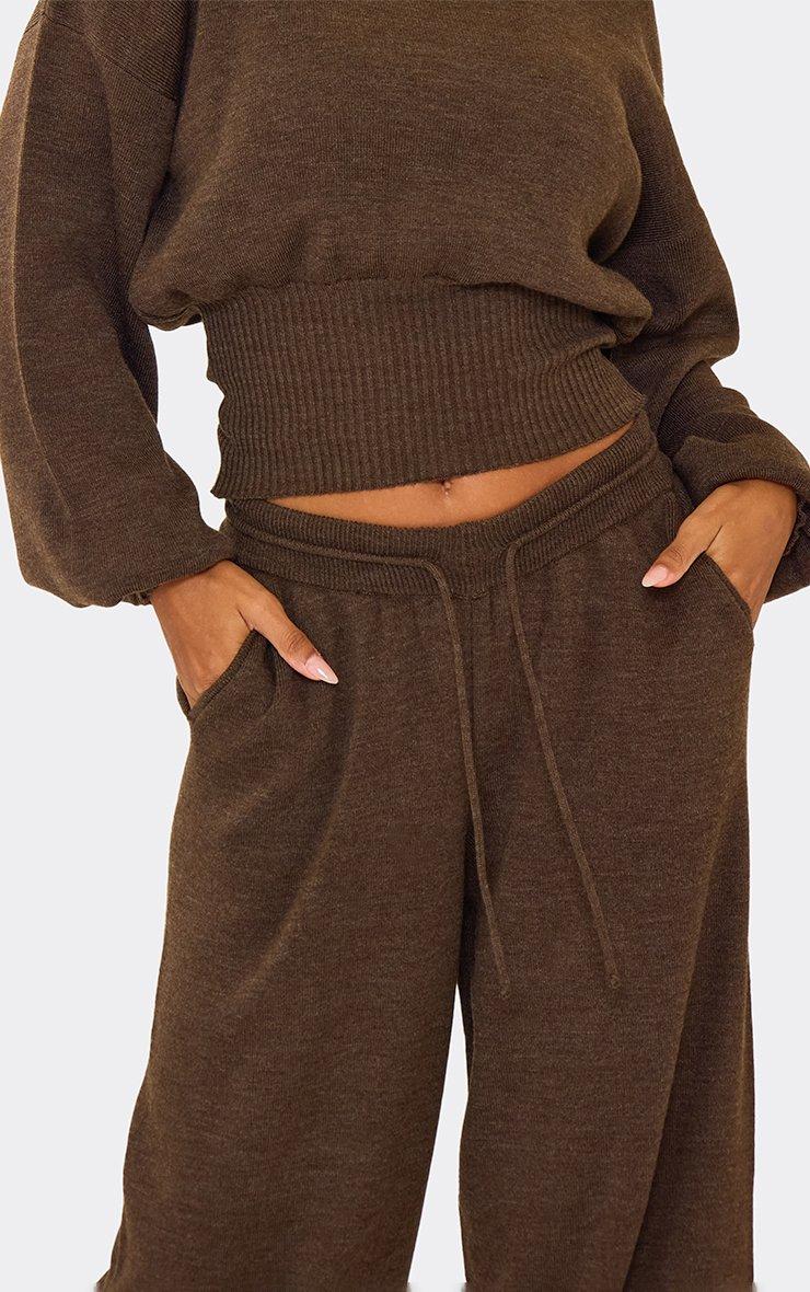 Mid Rise Drawstring Waist Wide Leg Trousers In Brown Knit