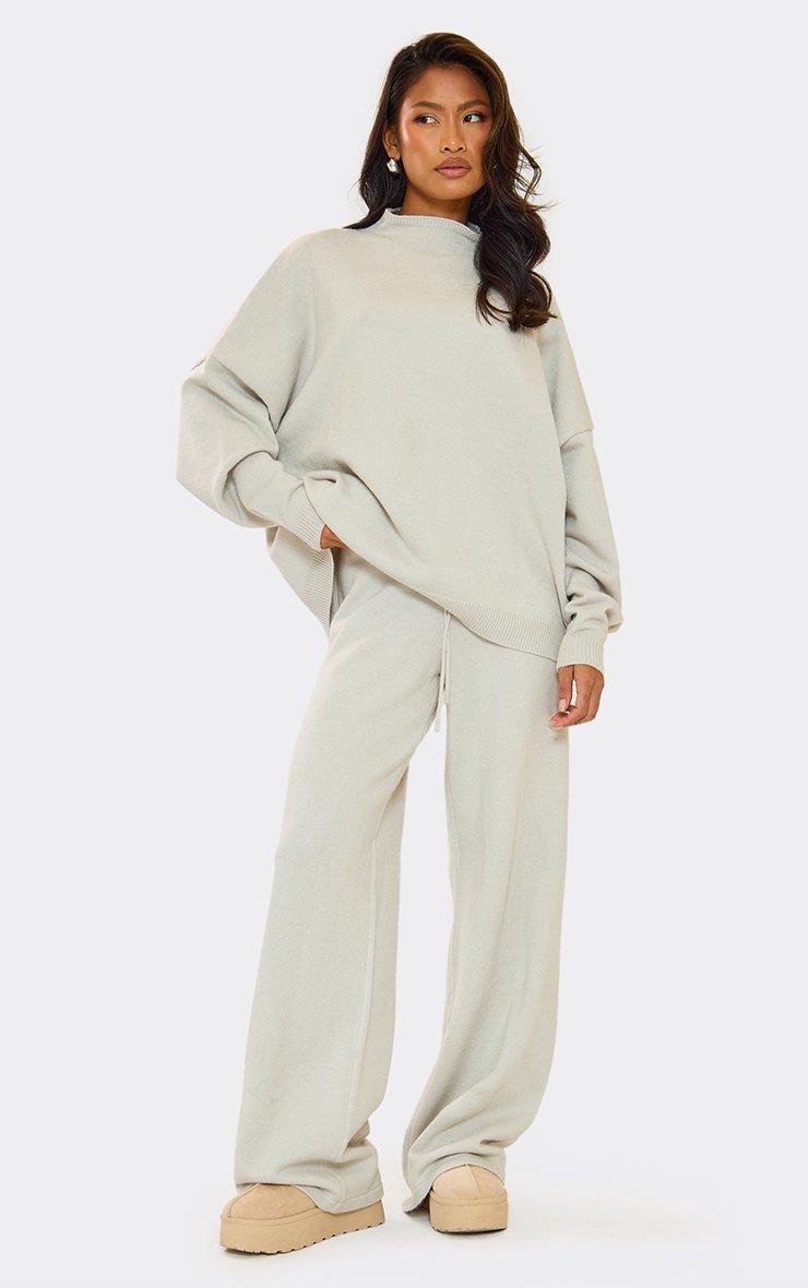 Tie Waist Wide Leg Trousers In Grey Marl Knit
