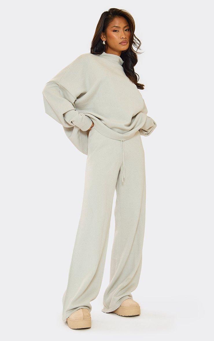 Mid Rise Wide Leg Ego Graphic Trousers In Grey Knit