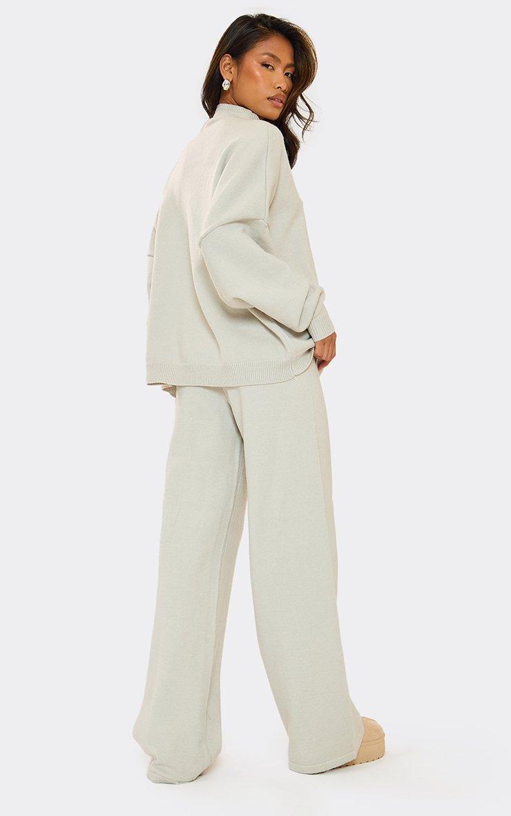 Mid Rise Wide Leg Trousers In Beige Compact Knit