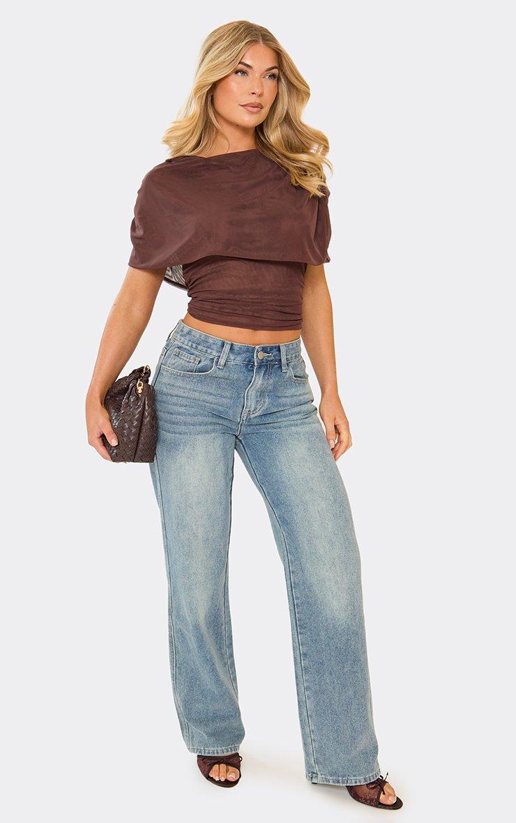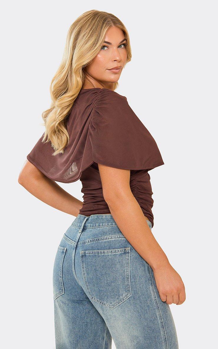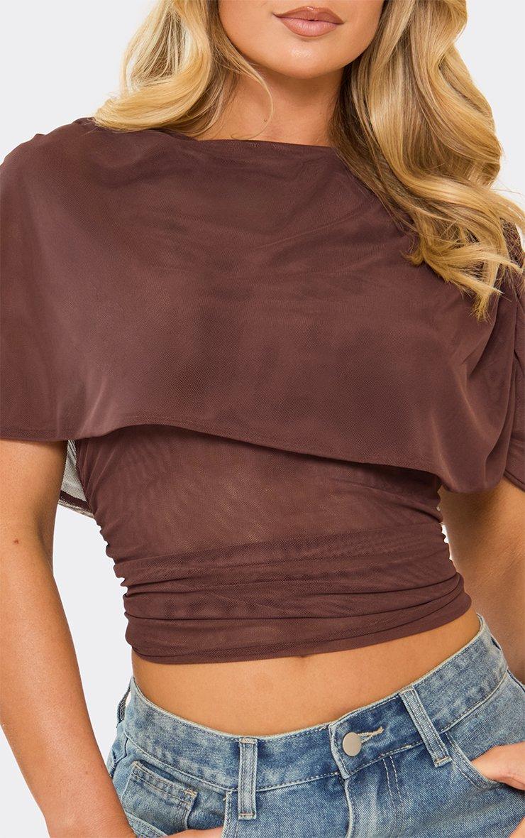 Draped Mesh Detail Cinched Top In Brown