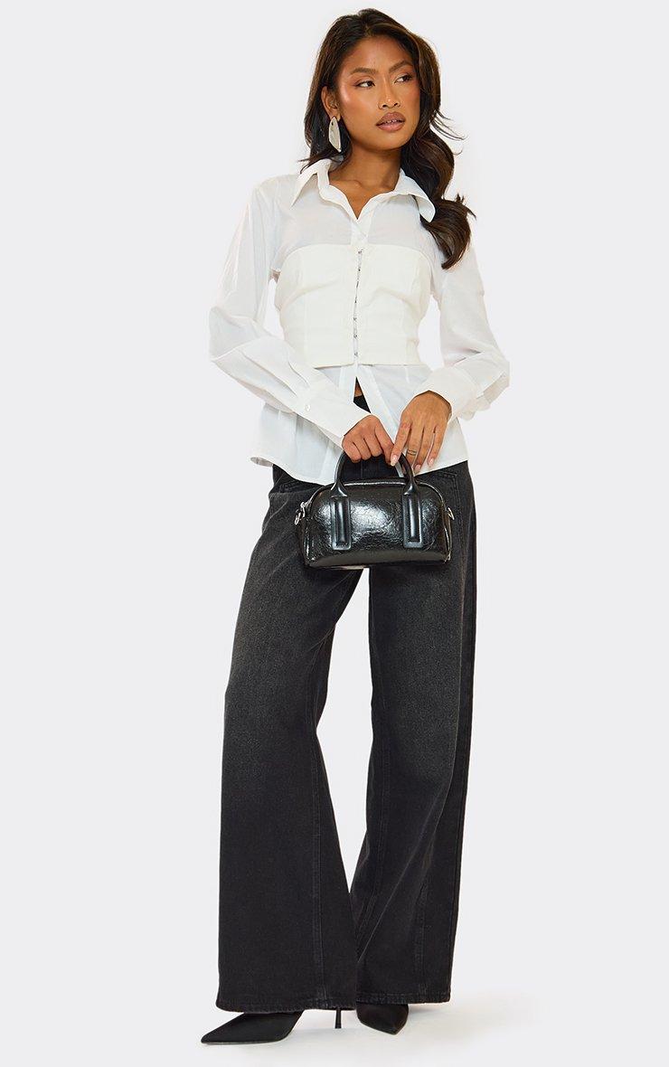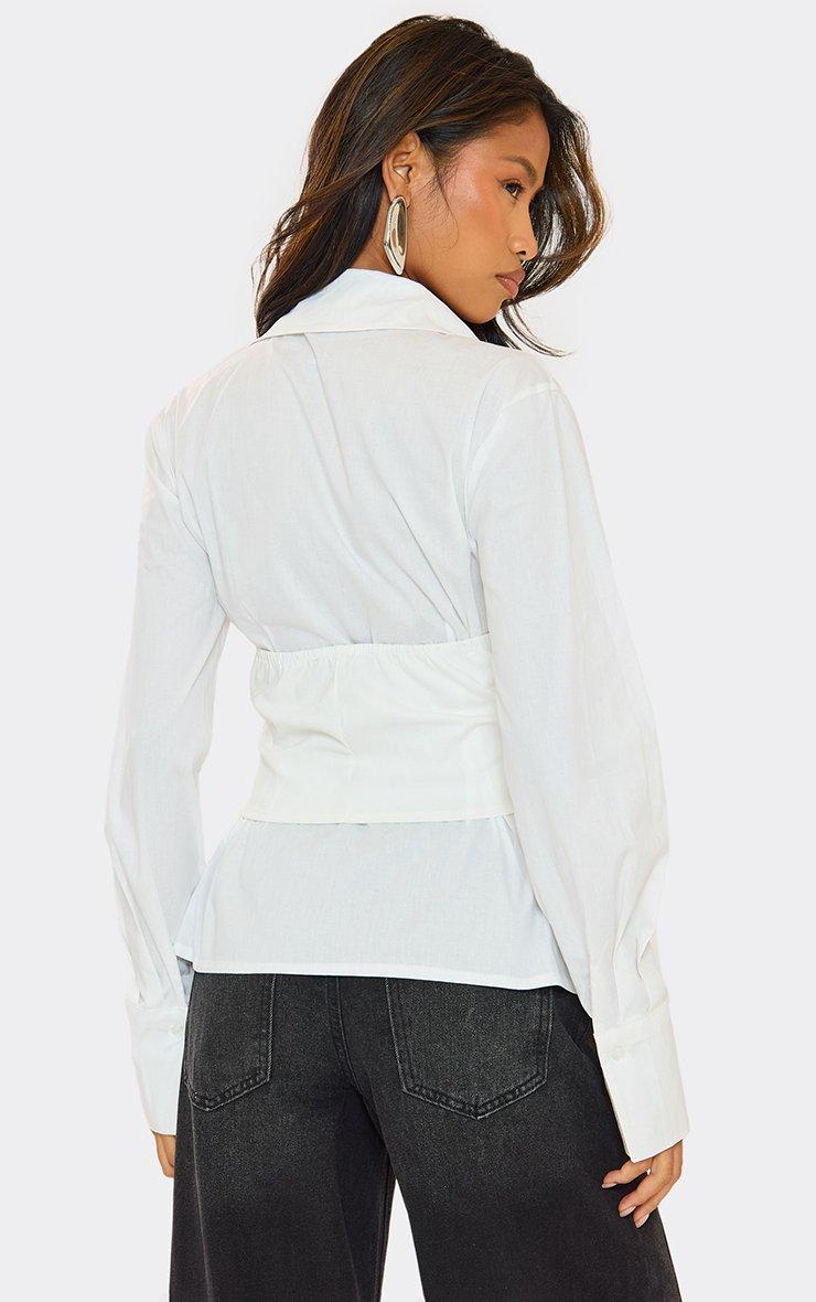 Long Sleeve Cinched Waist Corset Poplin Detail Shirt In White