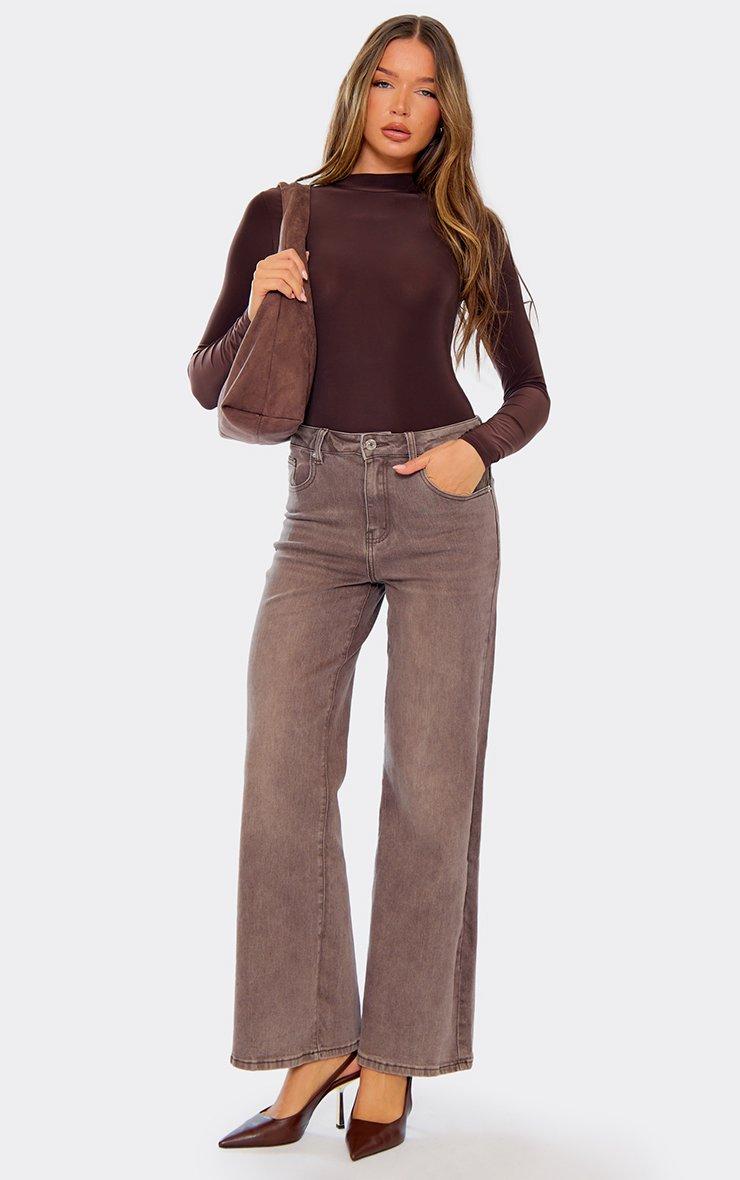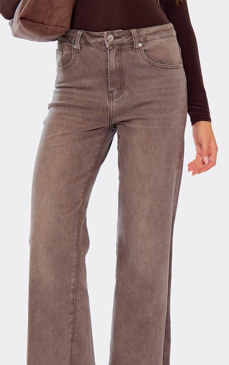 Mid Rise Wide Leg Jeans In Washed Brown Denim