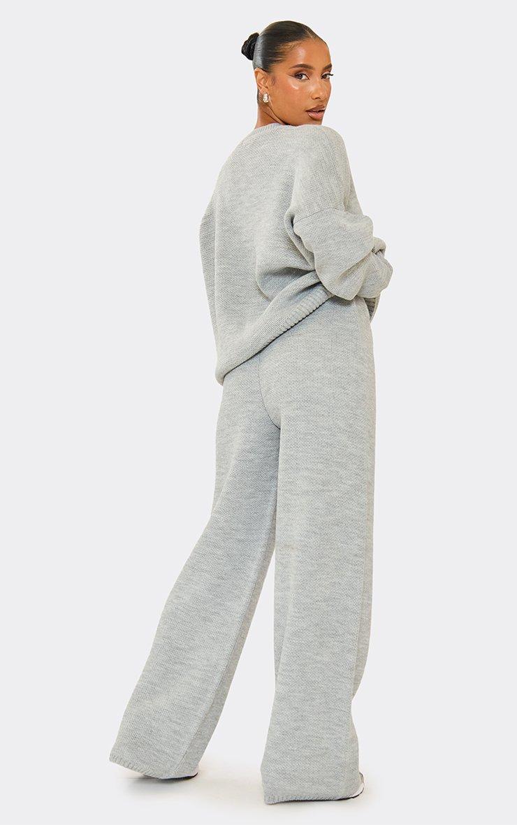 High Waist Wide Leg Trousers In Grey Premium Knit