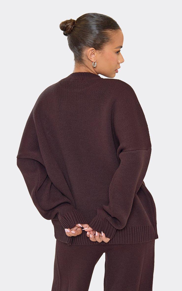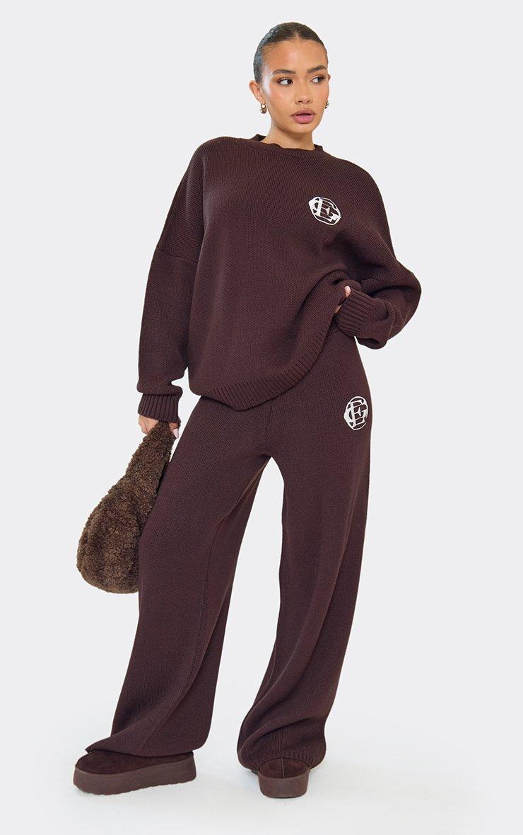 Oversized Embroidered Ego Logo Detail Jumper In Chocolate Brown Knit