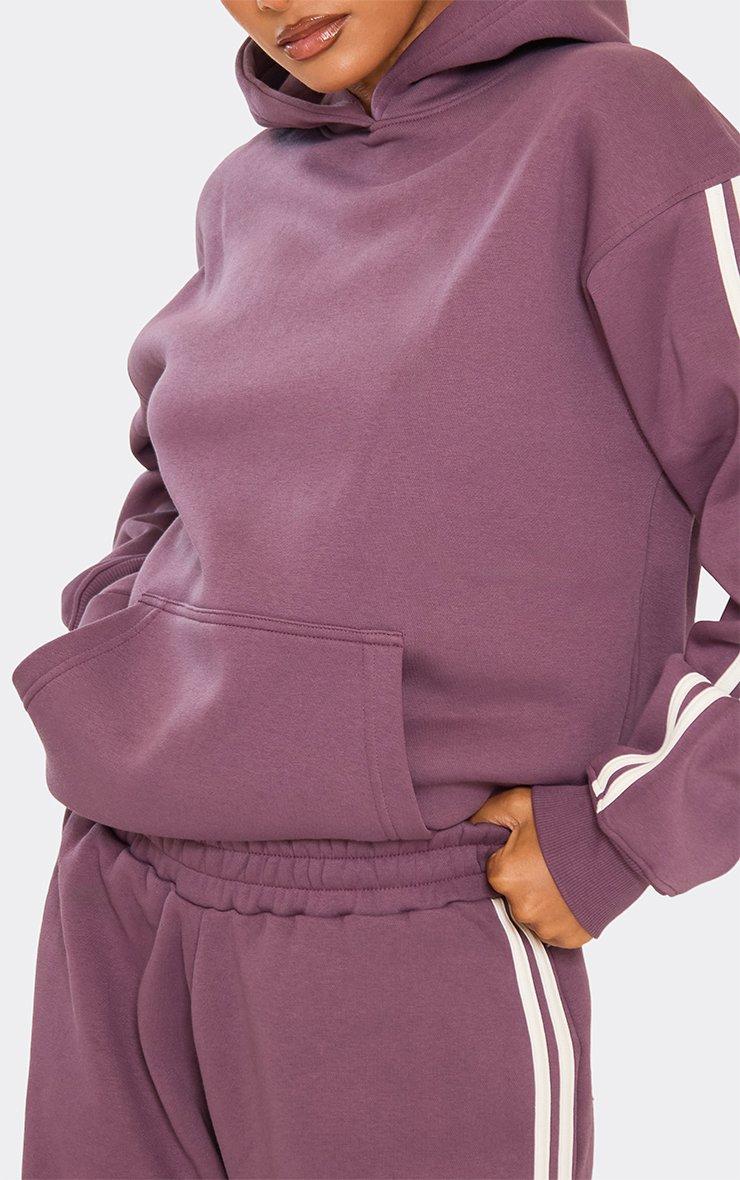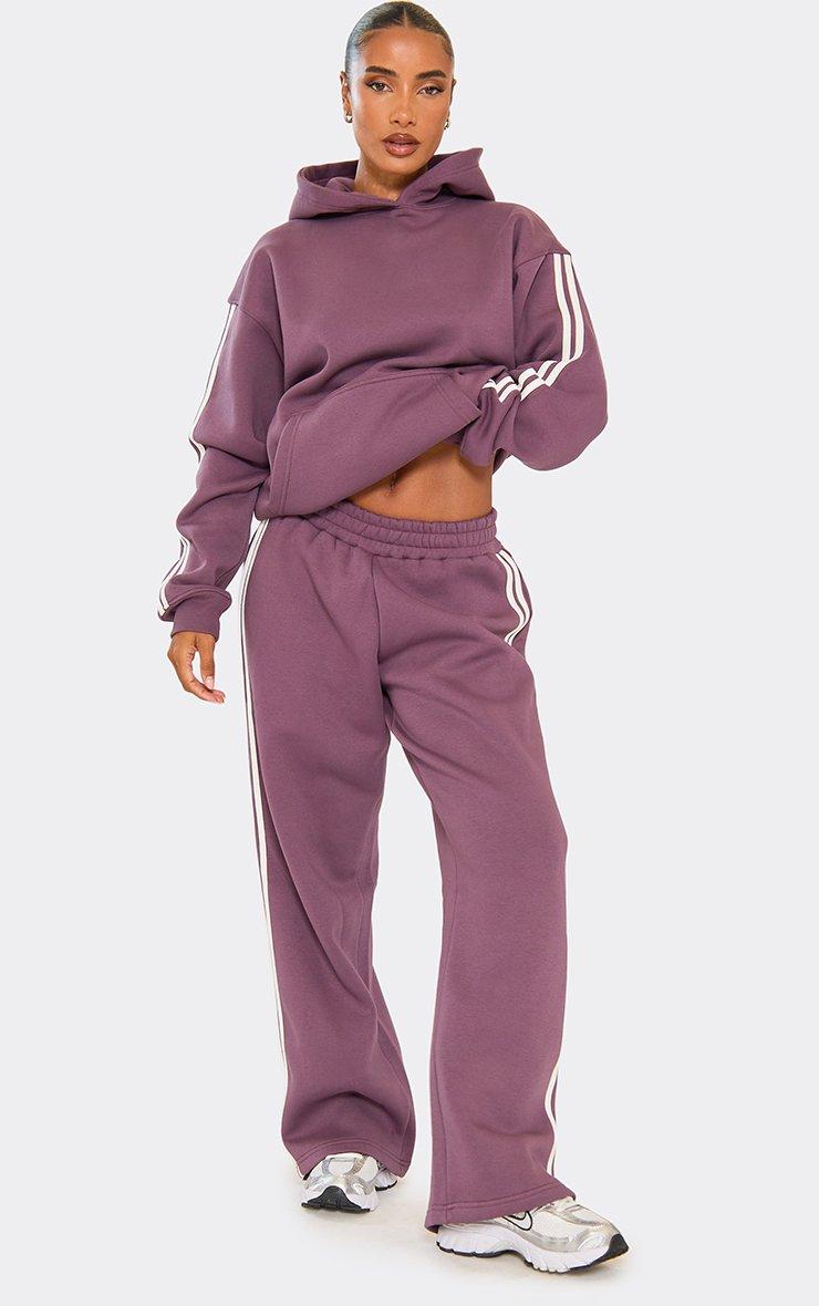 Oversized Mid Rise Contrast Stripe Straight Leg Joggers In Plum