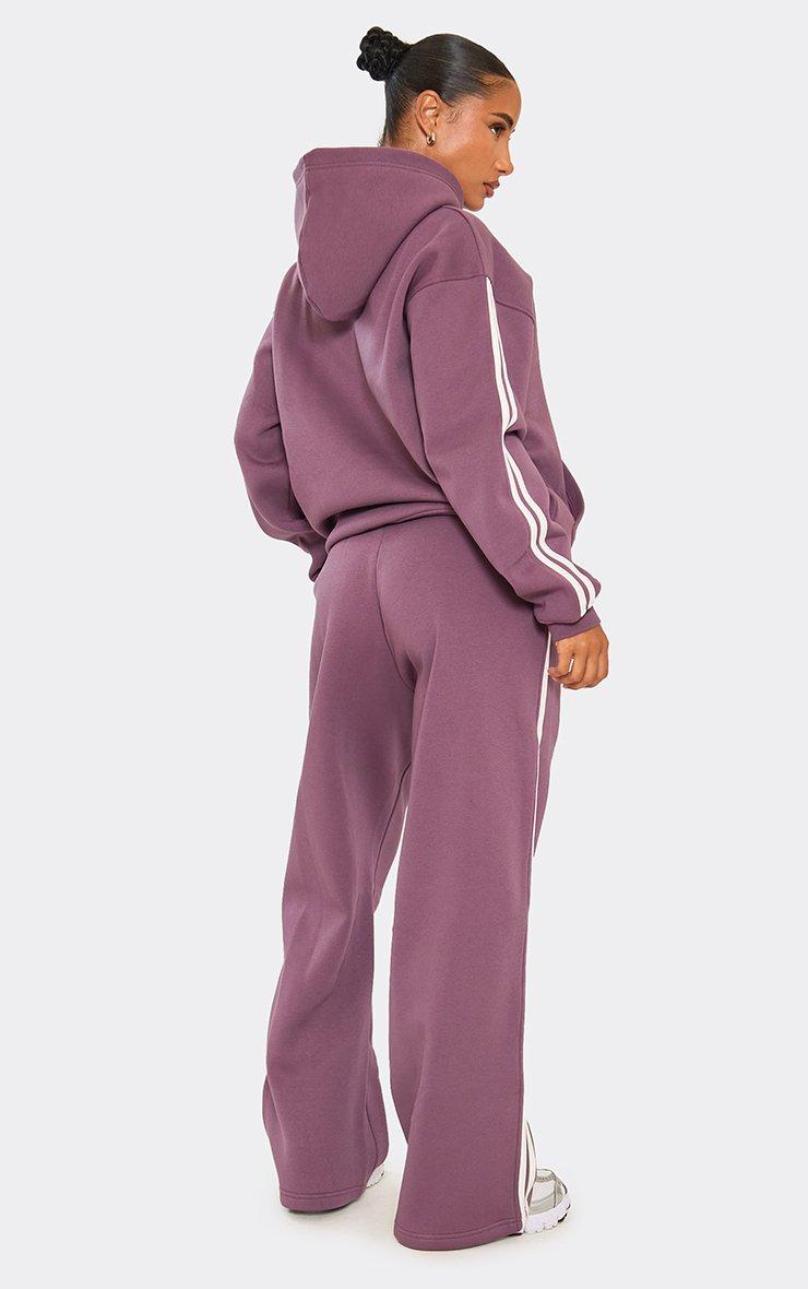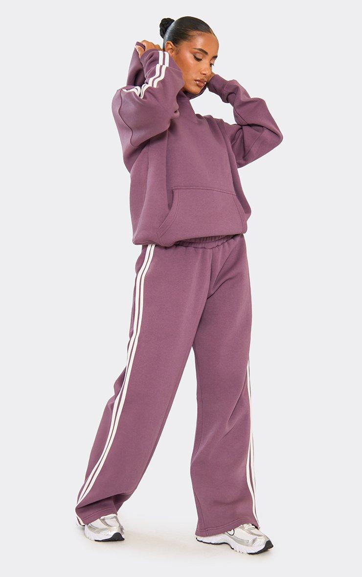 Oversized Mid Rise Contrast Stripe Straight Leg Joggers In Plum