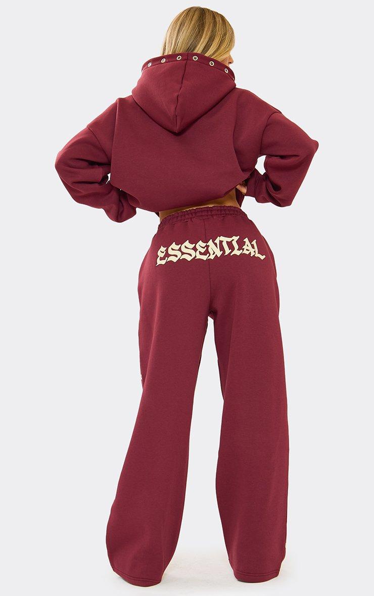 Drawstring Waist Detail Straight Leg Trousers In Burgundy Ribbed