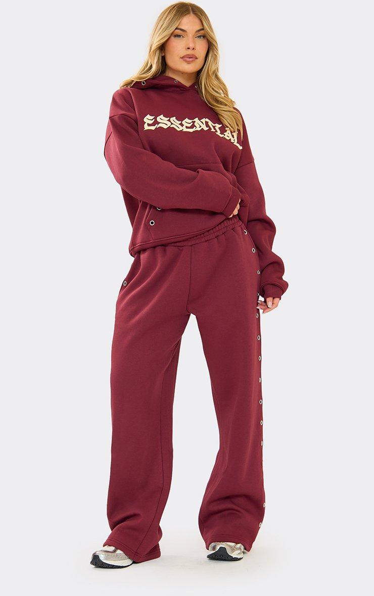 Contrast Stripe Embroidered Swirl Logo Track Pants In Burgundy
