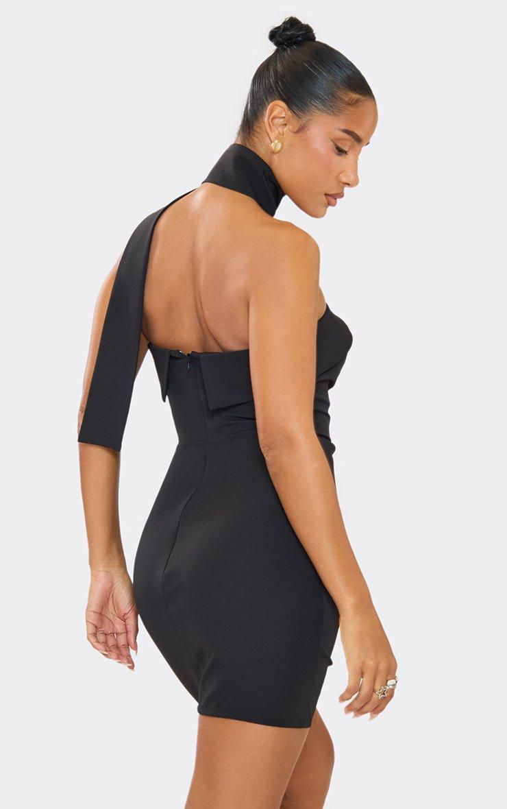 Scarf Detail Fold Over Bandeau Tailored Mini Dress In Black