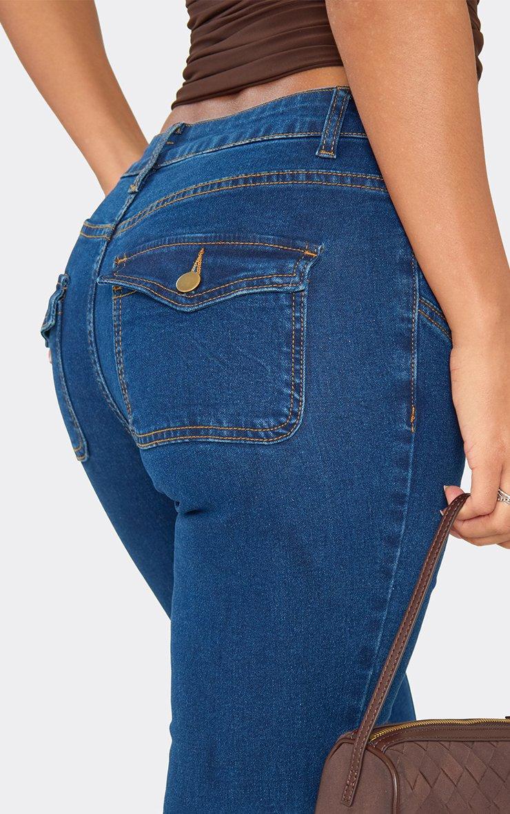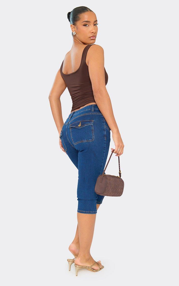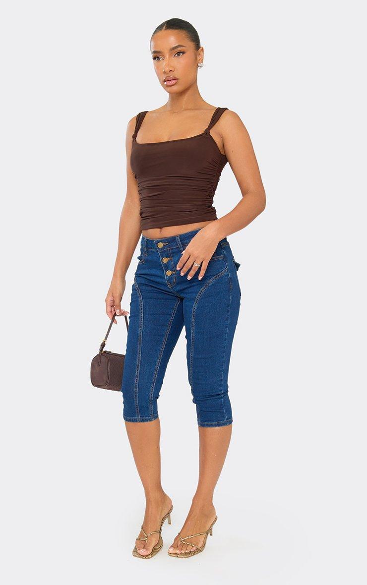 Low Rise Button Up Seam Detail Capri Jeans In Indigo Blue Denim