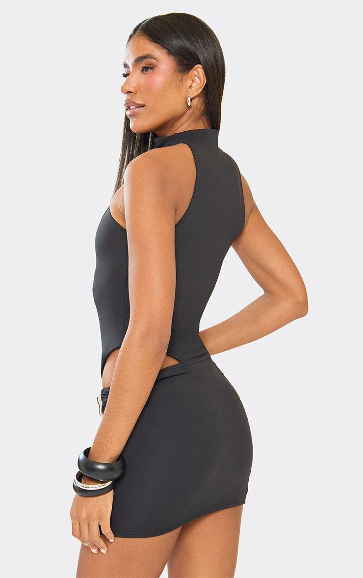 Short Sleeve Cinched Waist Fitted T-Shirt In Black