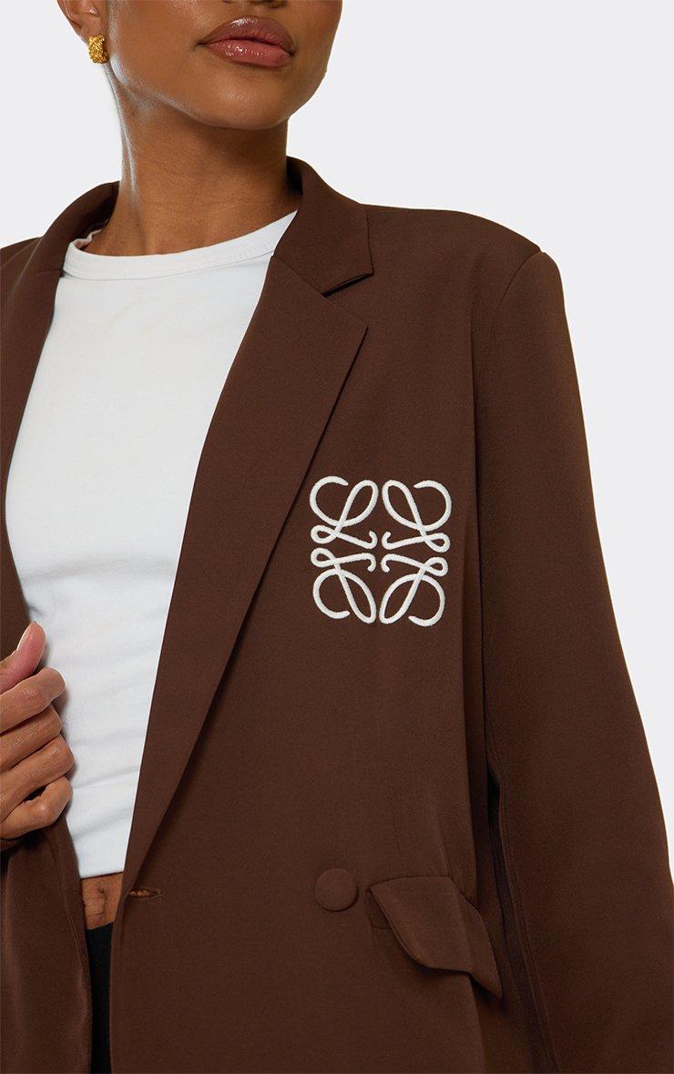 Long Sleeve Swirl Logo Detail Oversized Blazer In Chocolate Brown