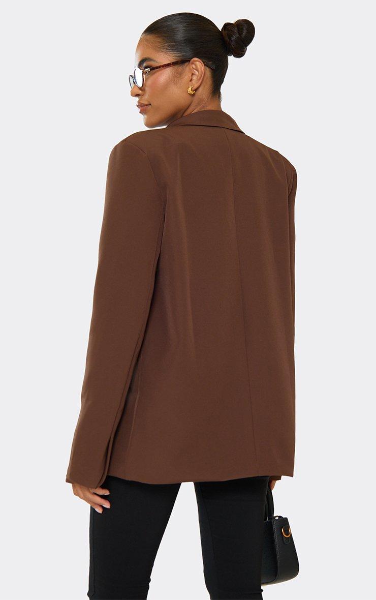Long Sleeve Button Detail Oversized Blazer In Chocolate Brown Suede