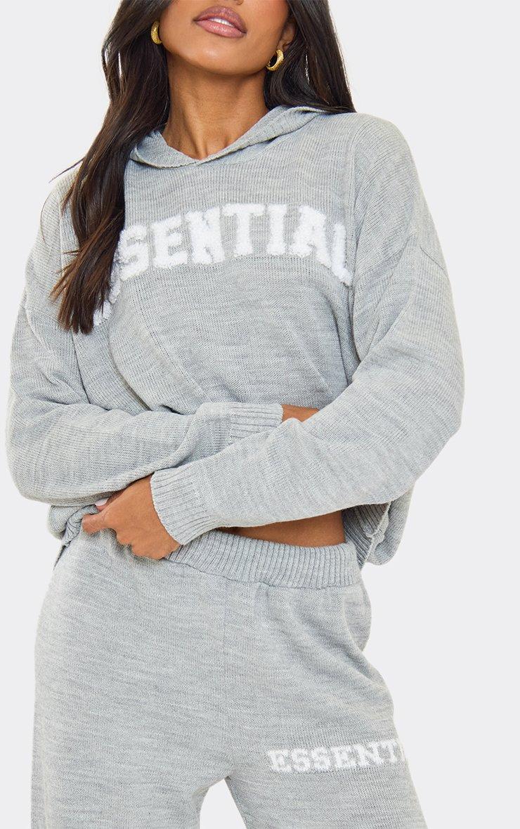 Long Sleeve Fluffy Essential Logo Detail Oversized Hoodie In Grey Knit