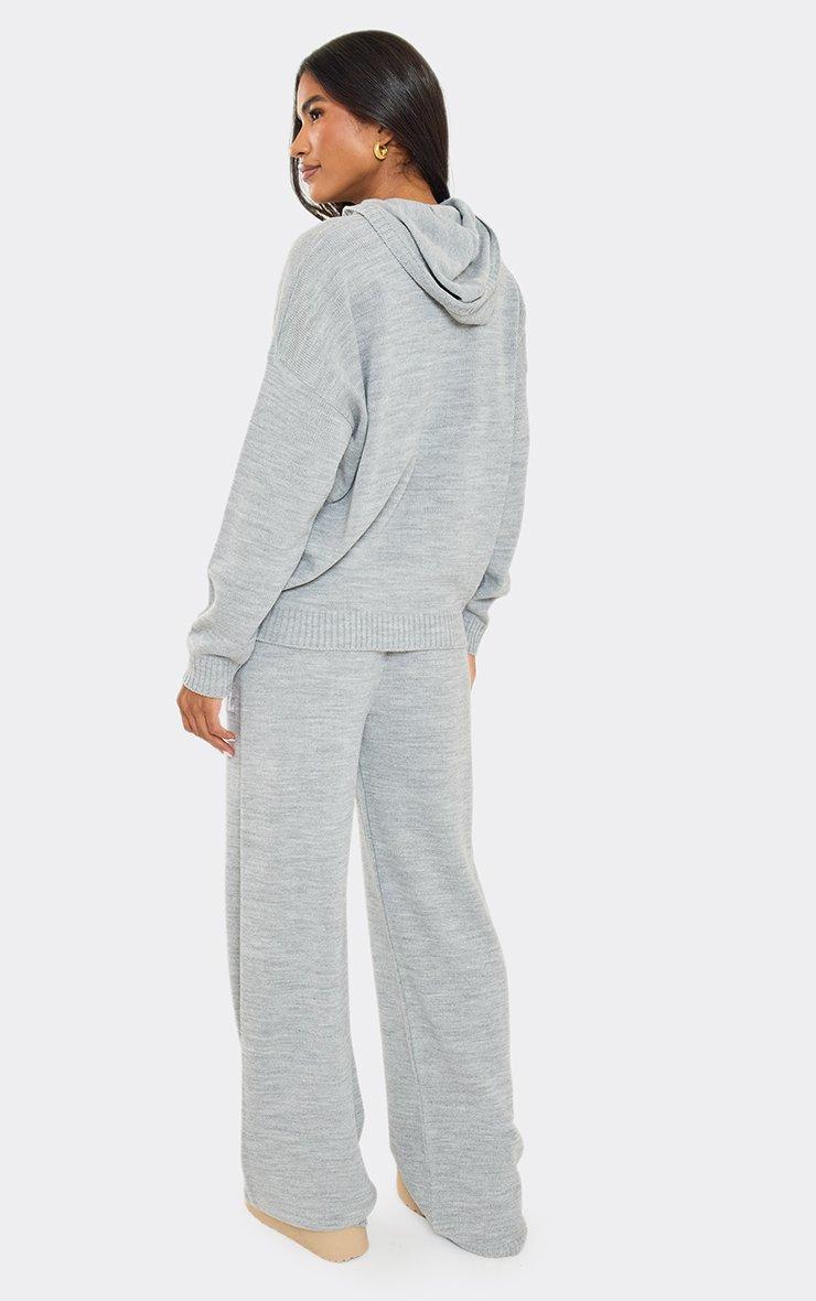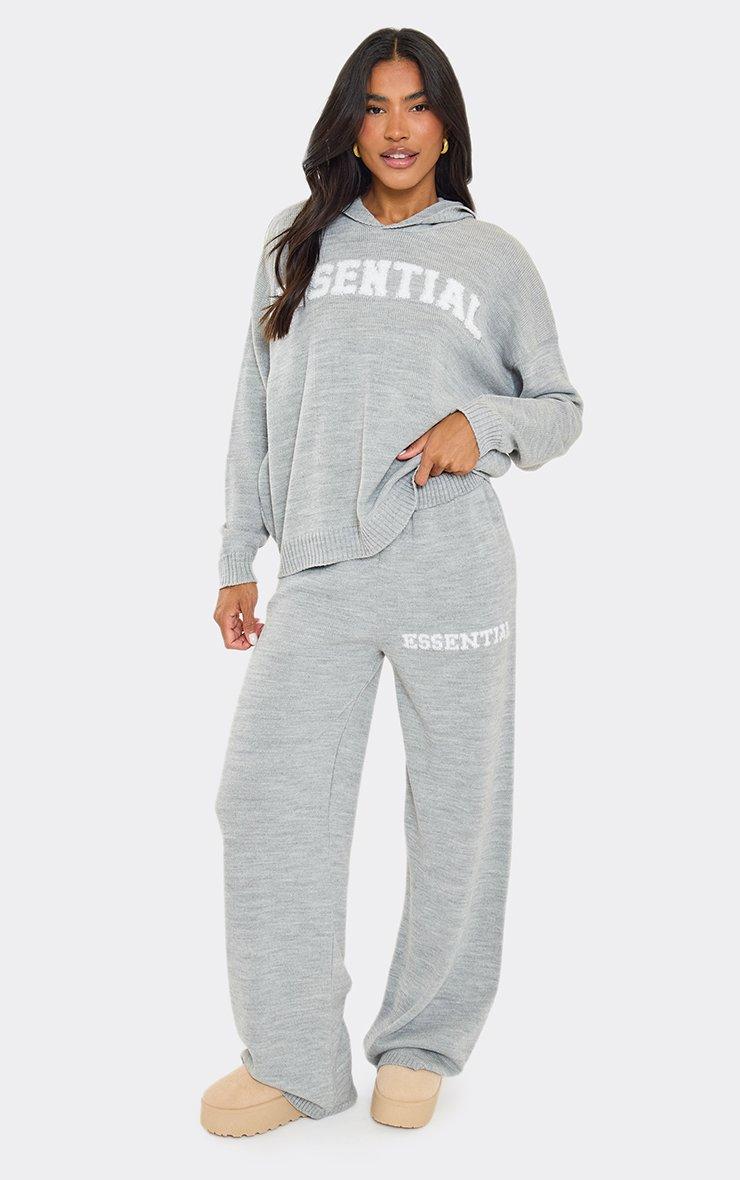 High Waist Contrast Swirl Detail Wide Leg Joggers In Grey Marl Knit