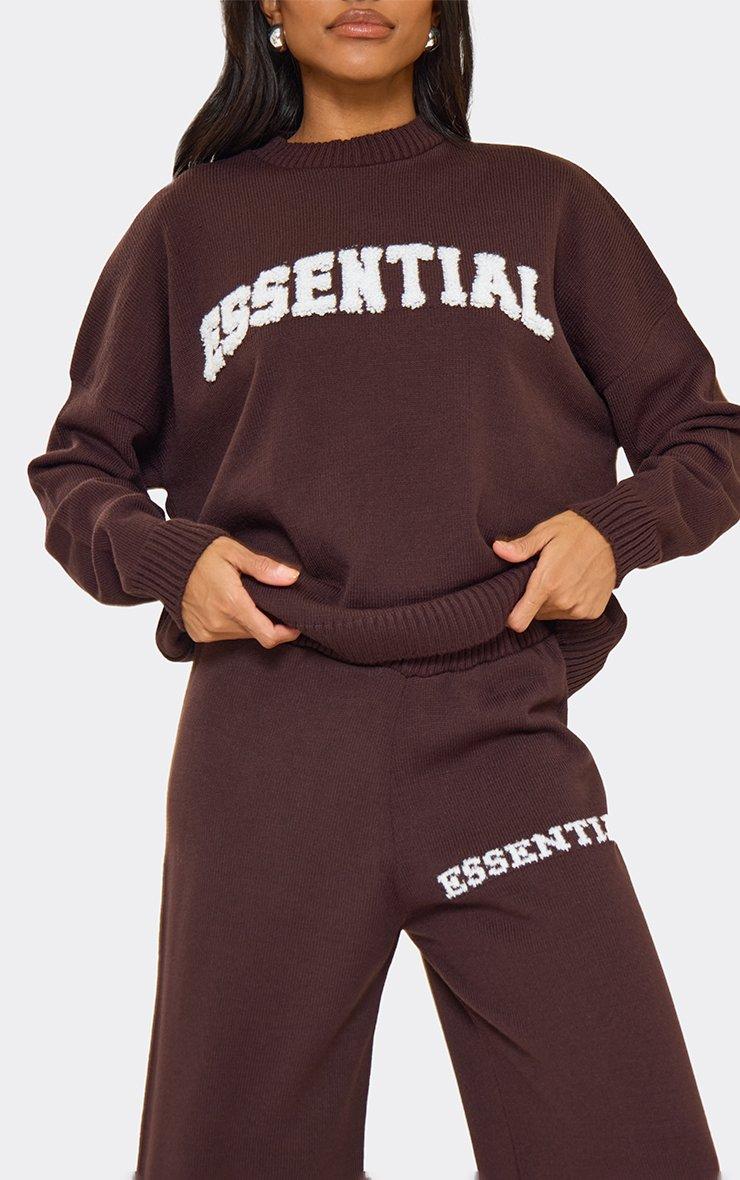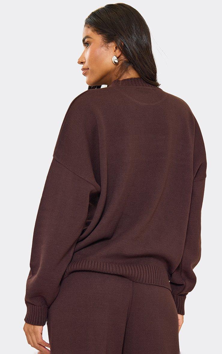 Oversized Embroidered Ego Logo Detail Jumper In Chocolate Brown Knit