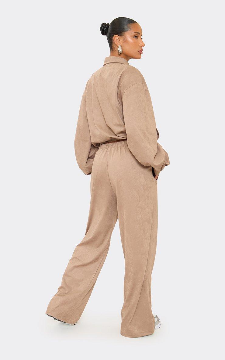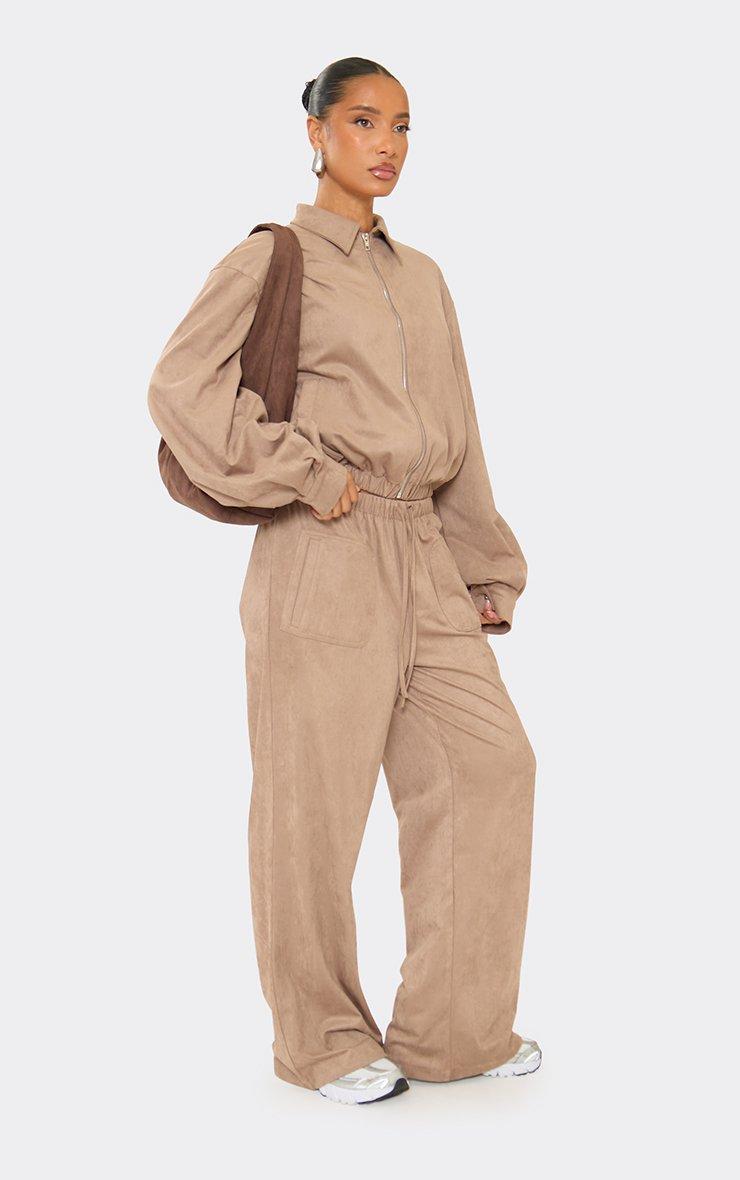 Collared Oversized Zip Up Jacket In Taupe Faux Suede