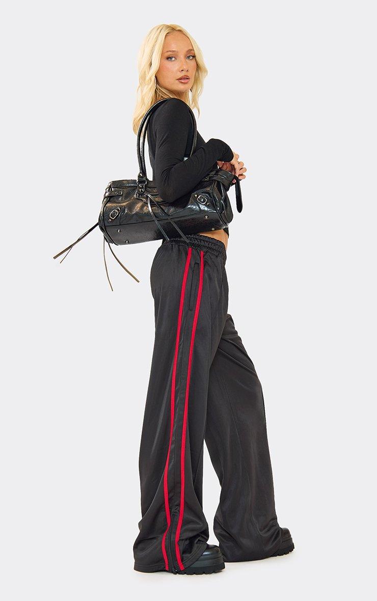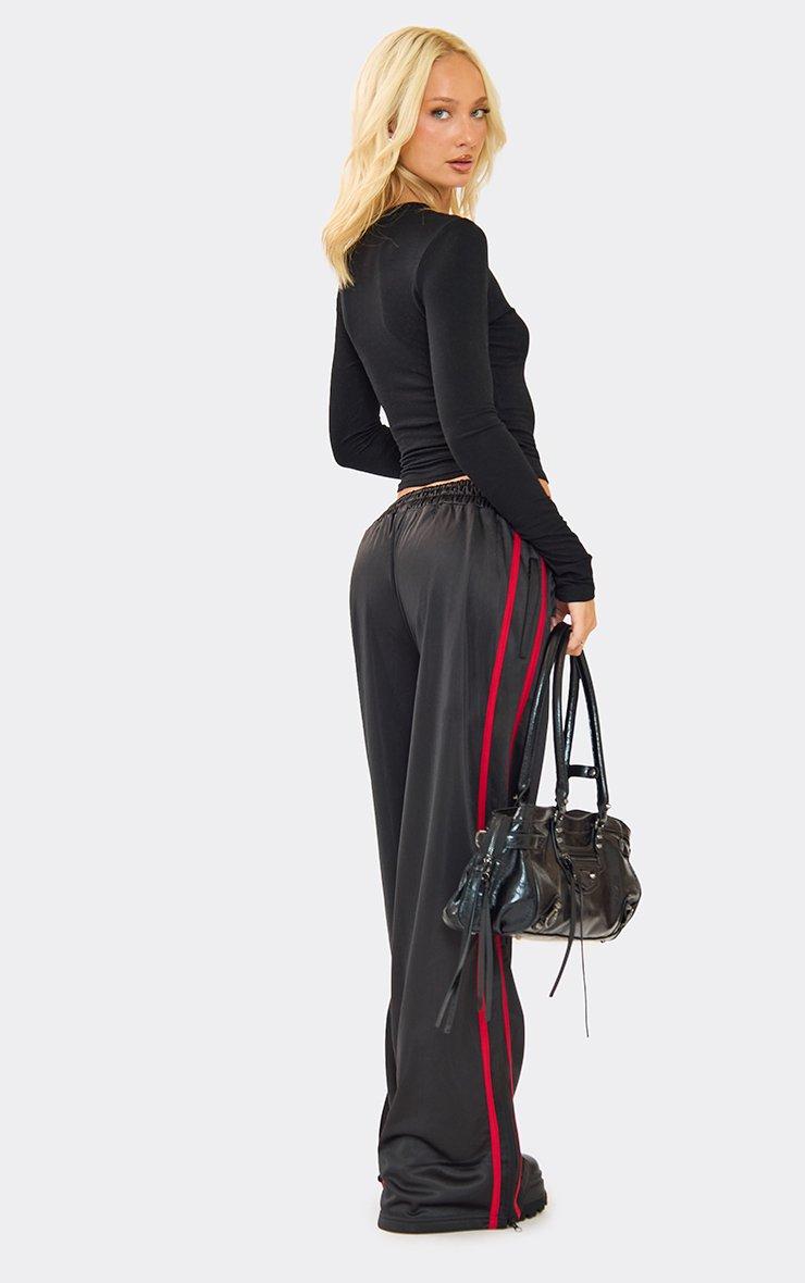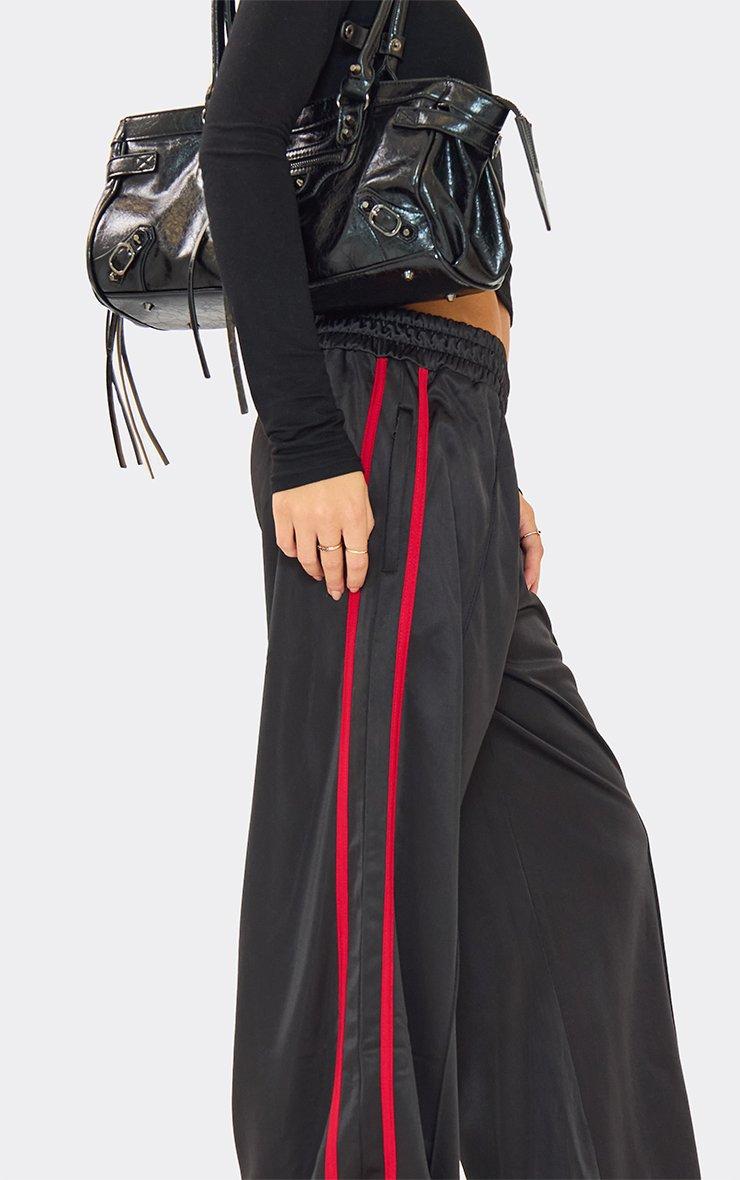 High Waist Contrast Side Stripe Straight Leg Joggers In Black