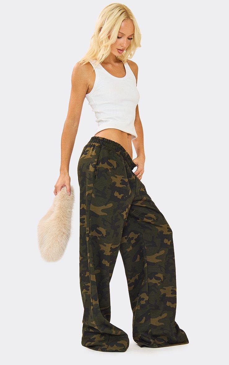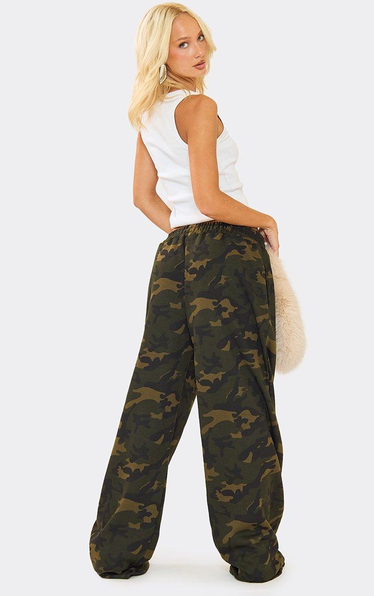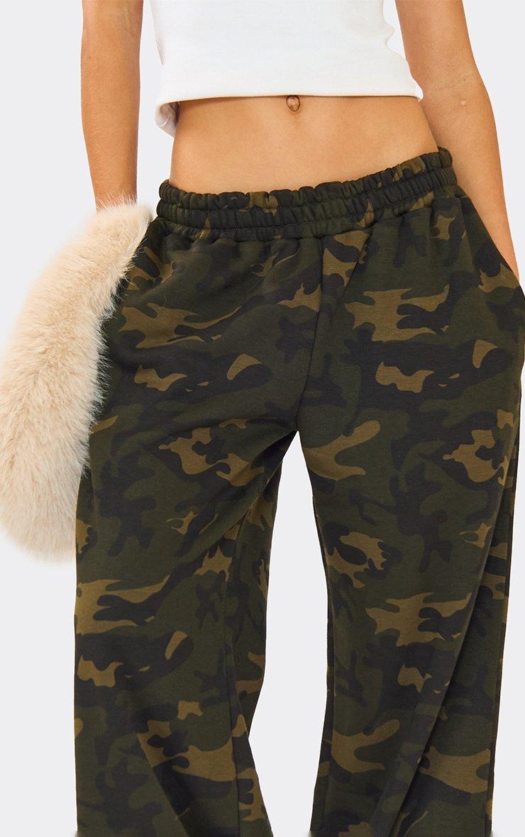 Elastic Waist Straight Leg Joggers In Multi Camo Print