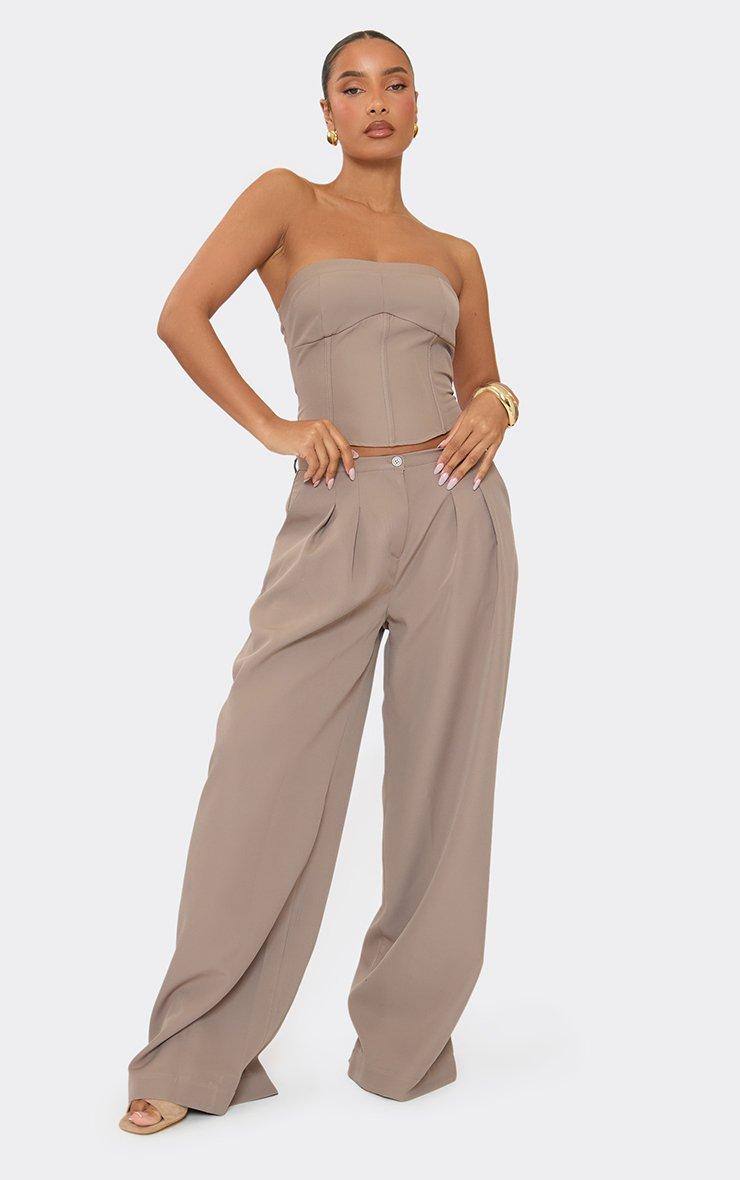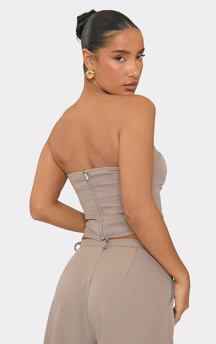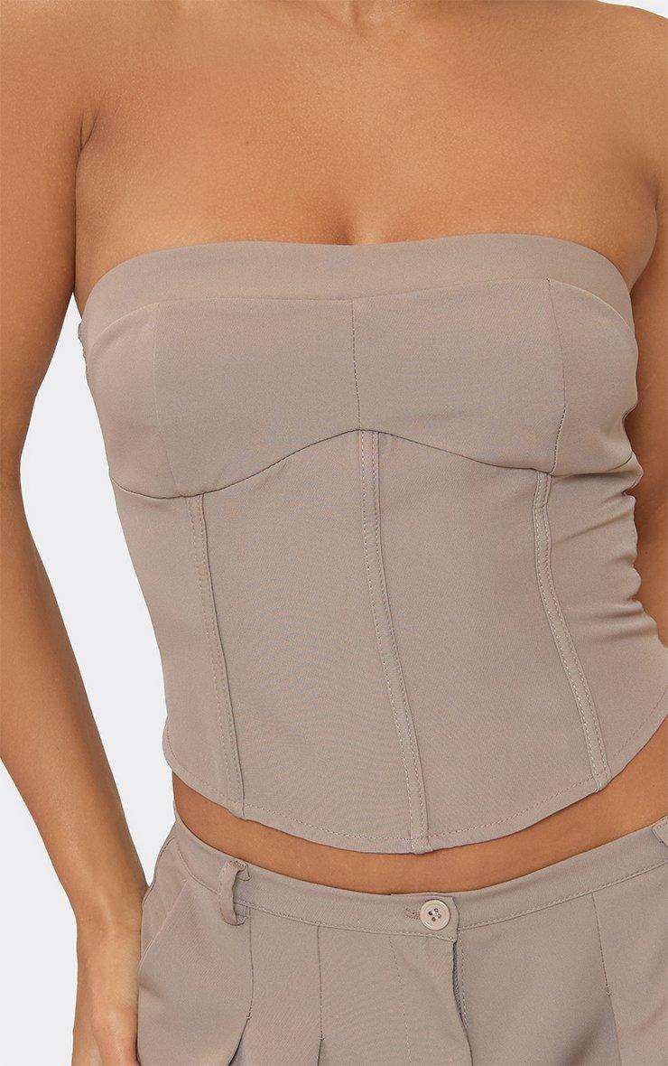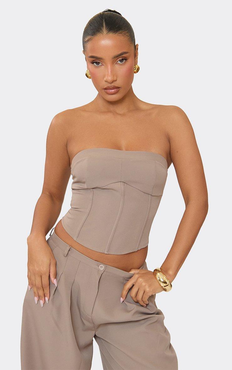 Bandeau Seam Front Detail Corset Top In Taupe