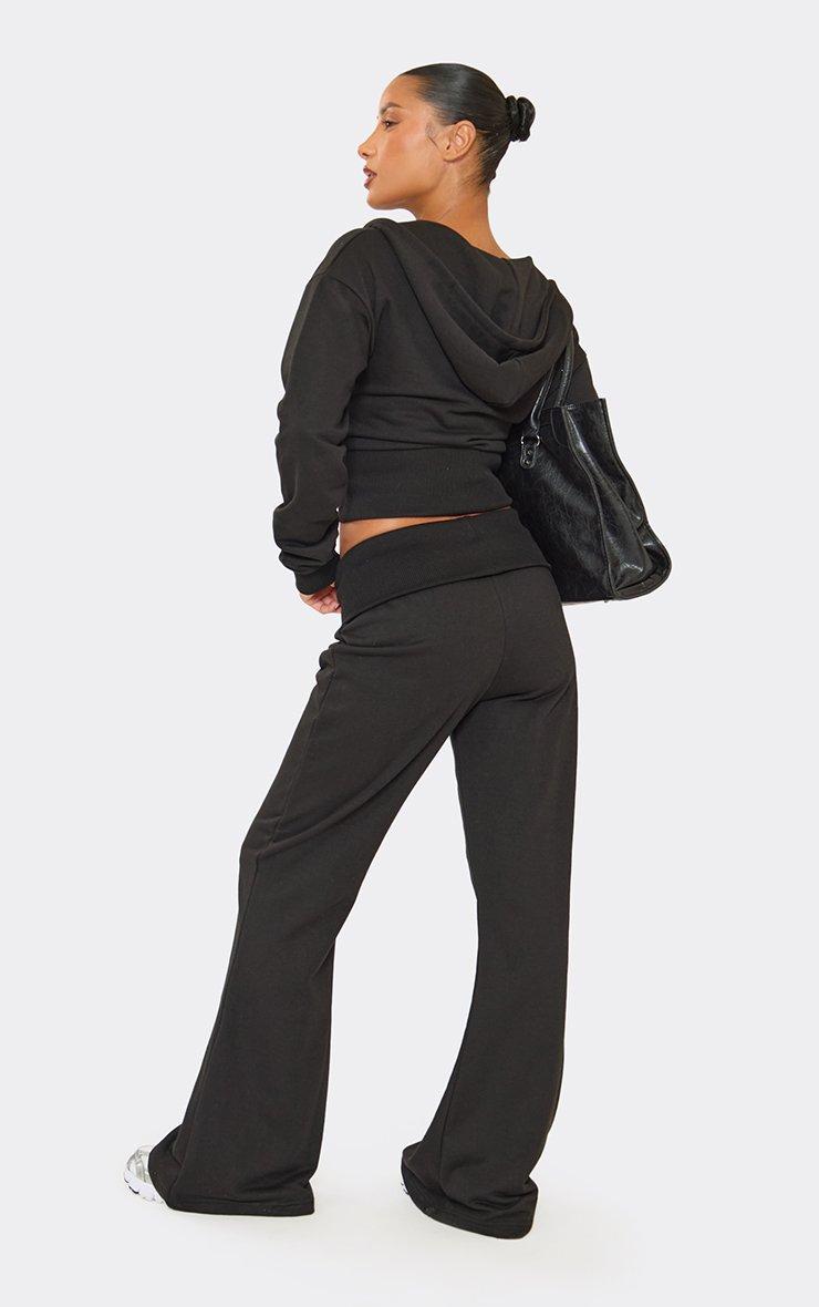 Mid Rise Fold Over Straight Leg Joggers In Black