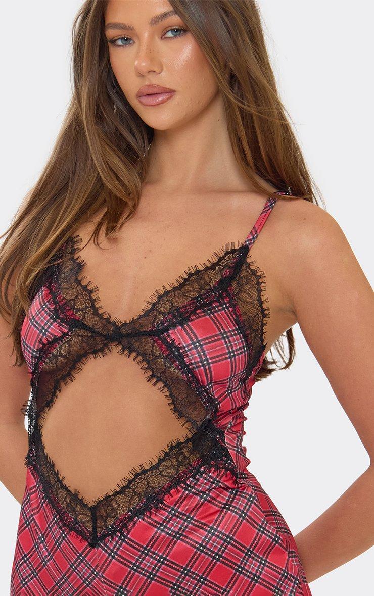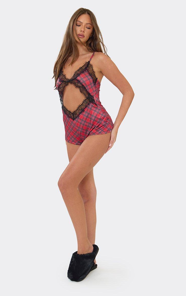 Cut Out Lace Detail Romper In Red Checked Print