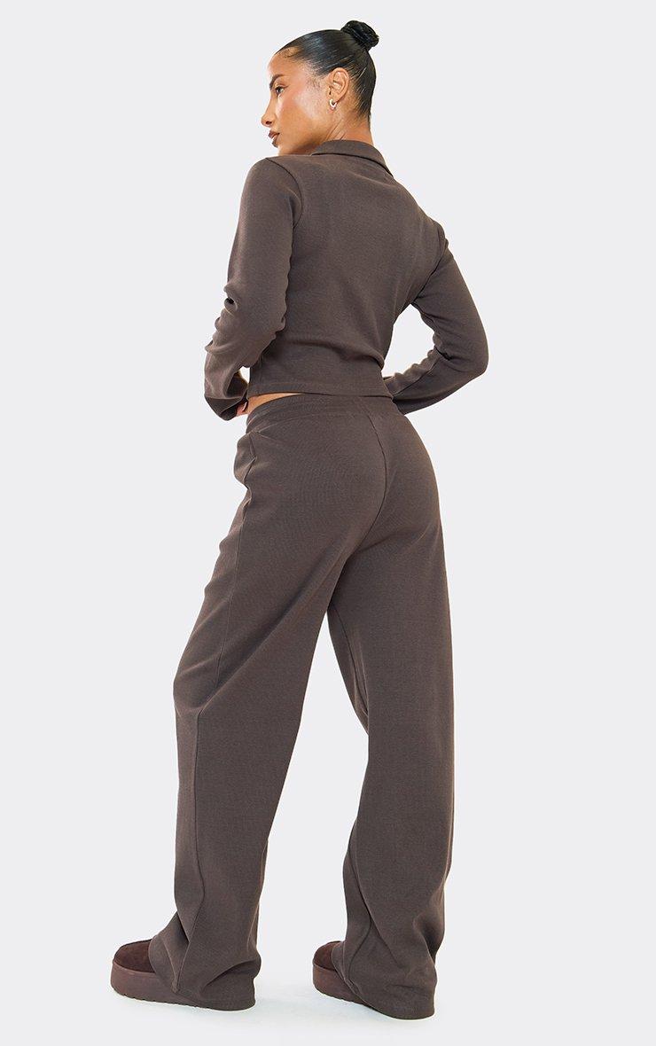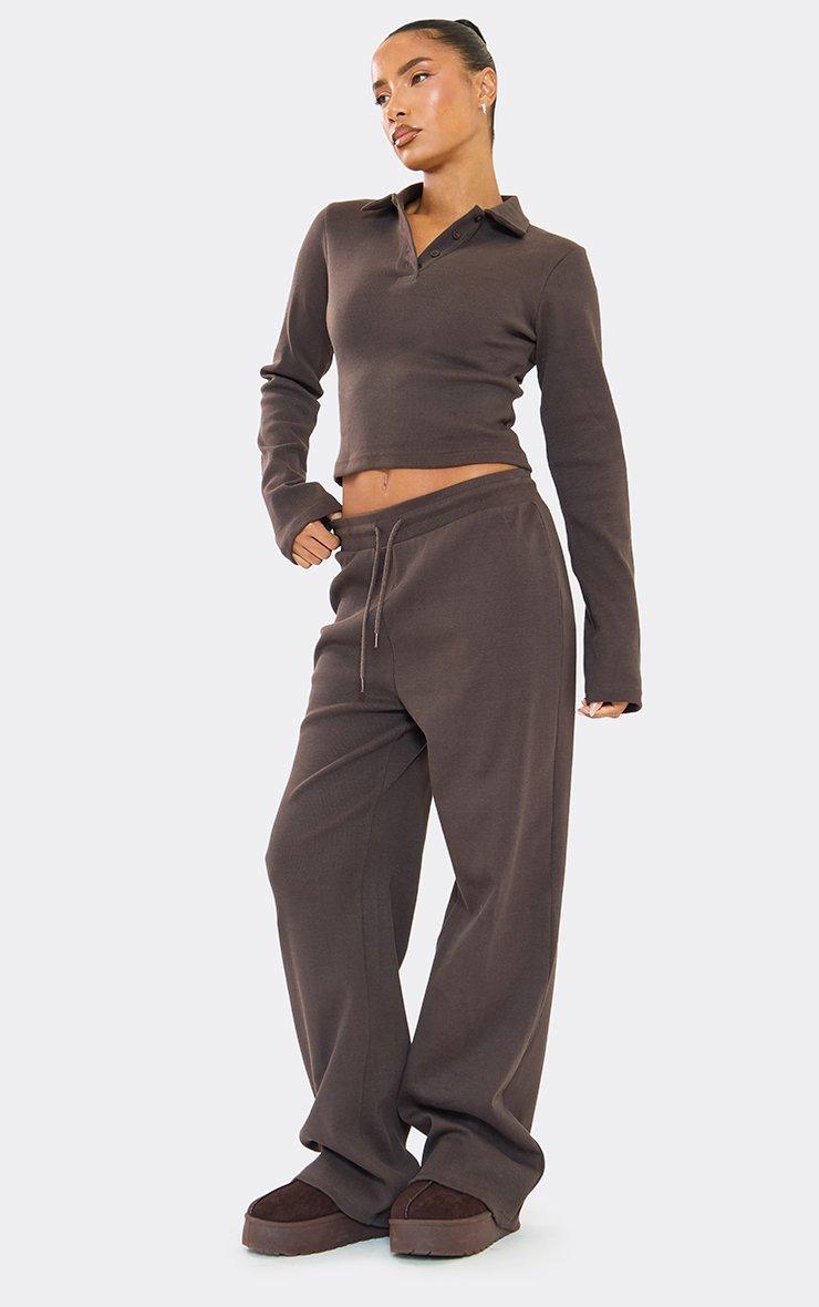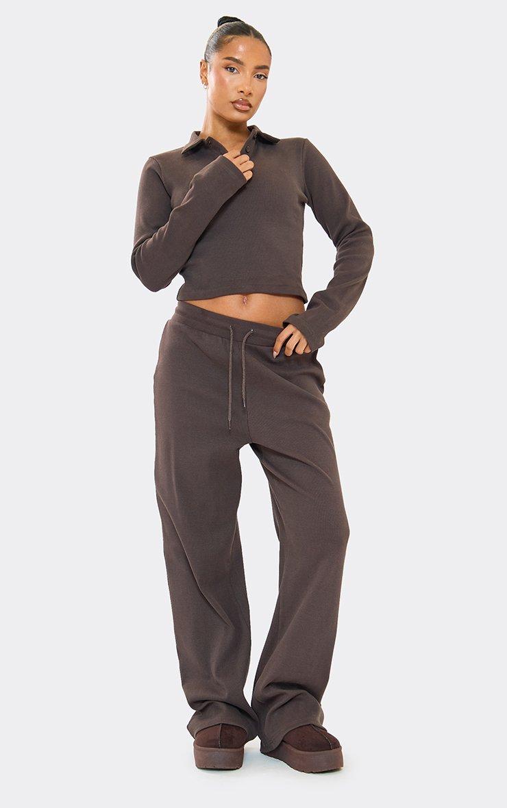 Low Rise Wide Leg Detail Joggers In Chocolate