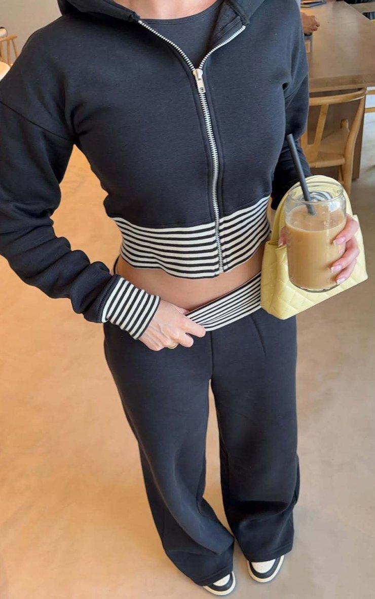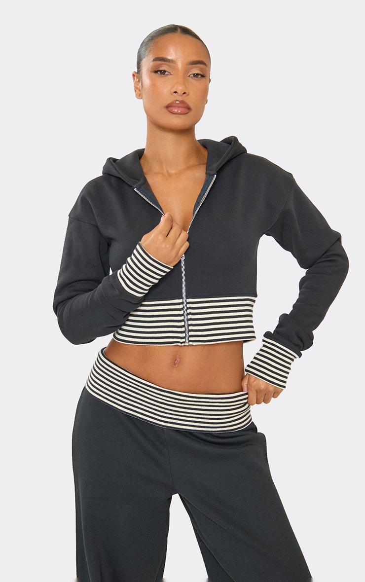 Contrast Stripe Fitted Zip Up Hoodie In Navy