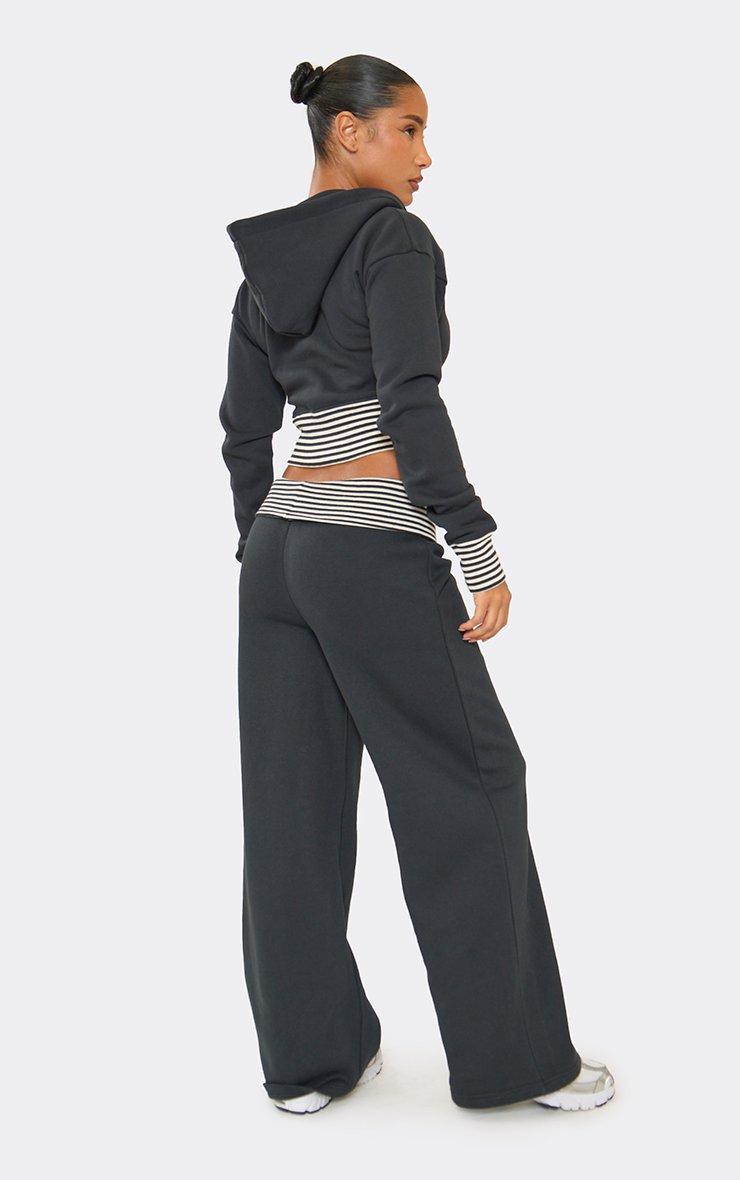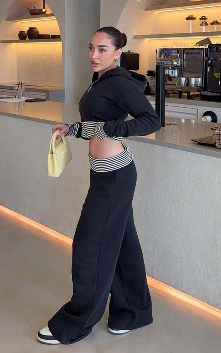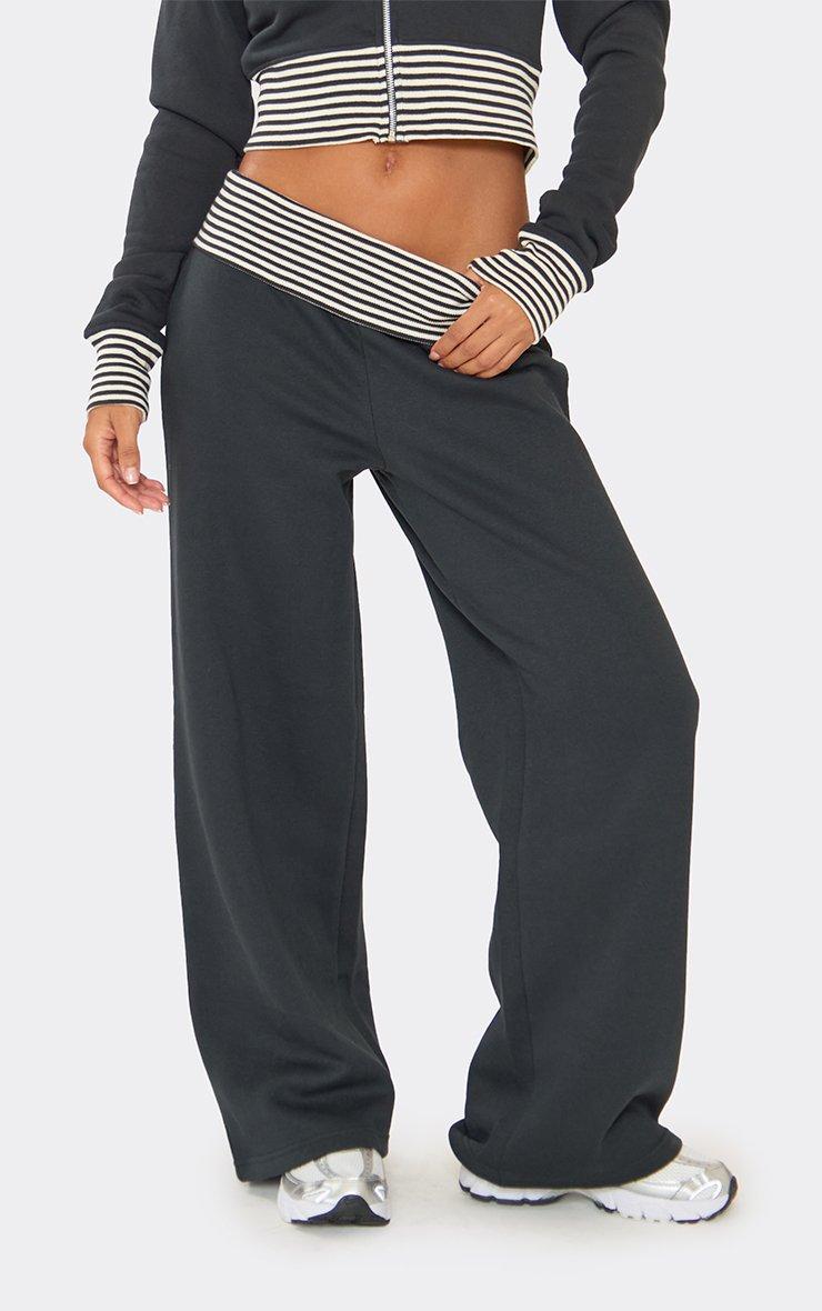Low Rise Fold Over Waist Contrast Stripe Wide Leg Joggers In Navy
