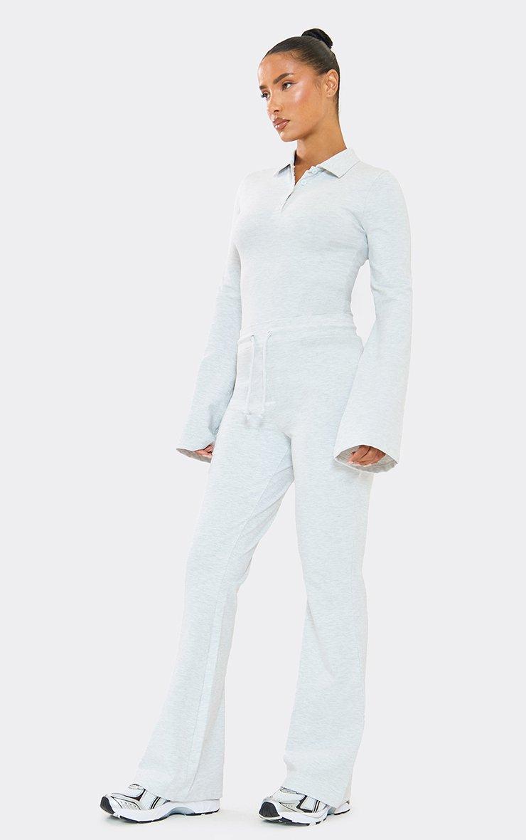 flared sleeve button detail top in grey marl