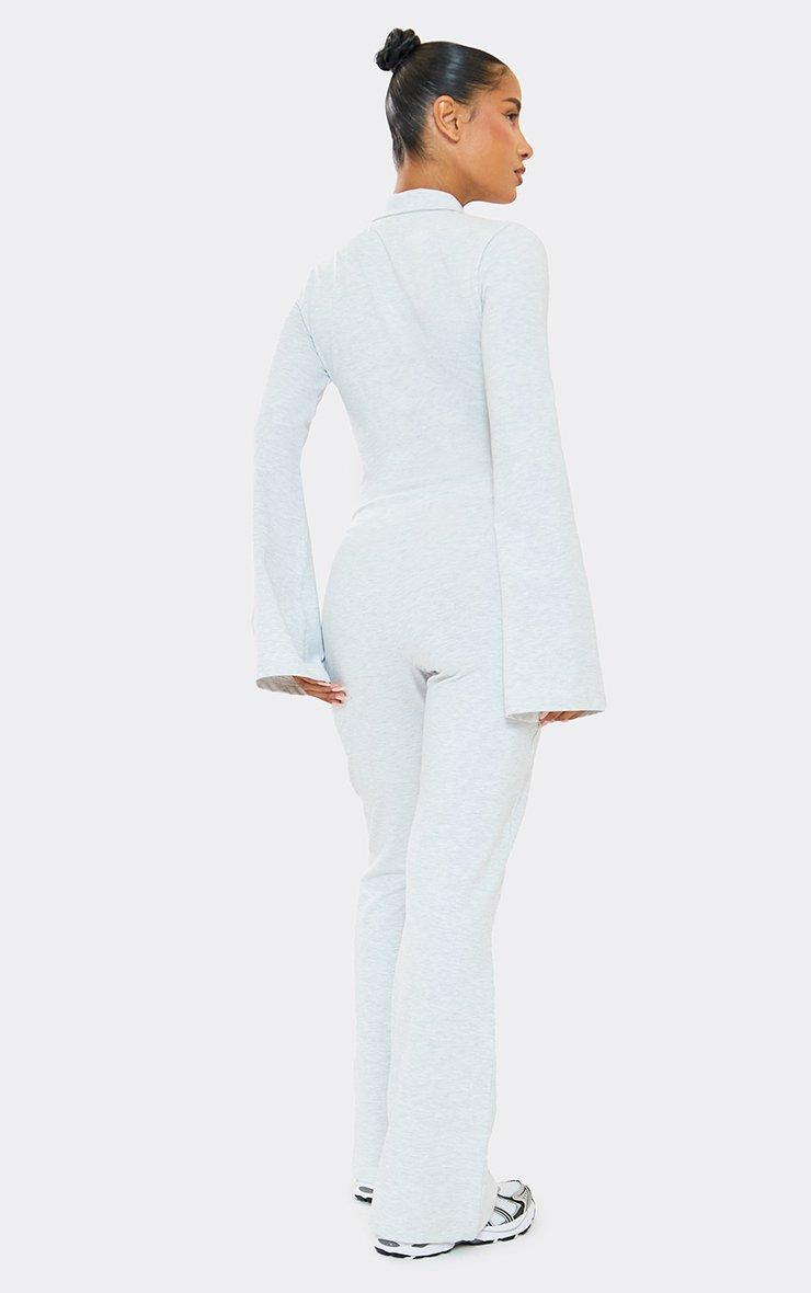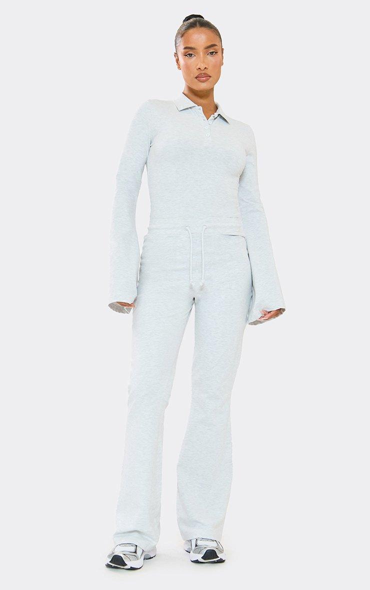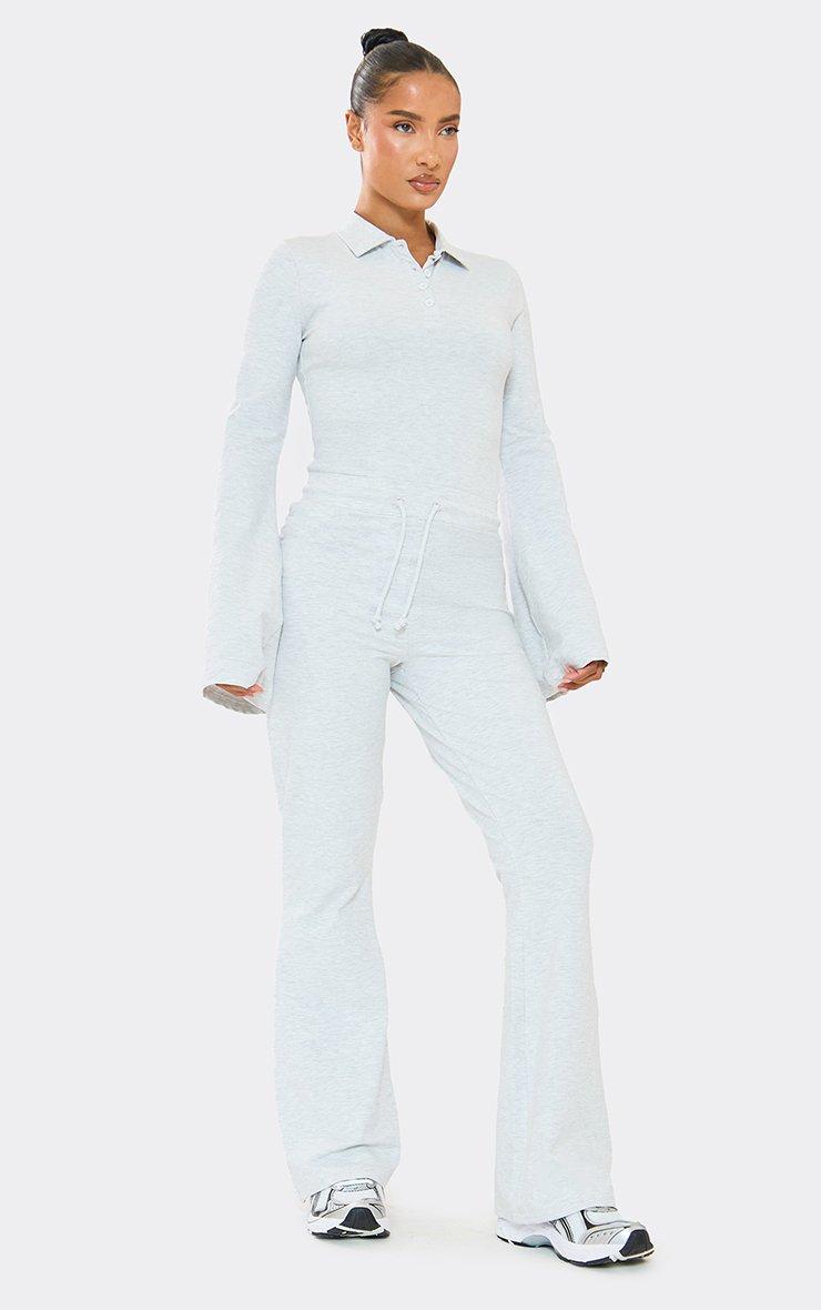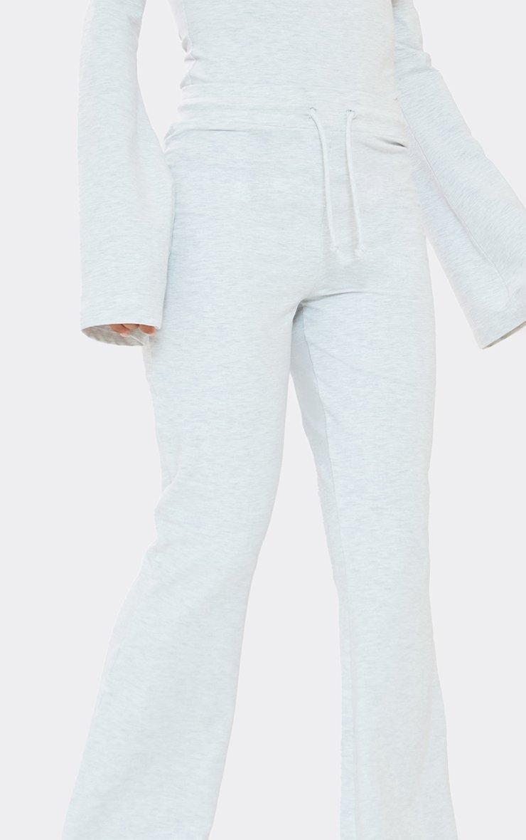 mid rise drawstring waist wide leg flared joggers in grey marl