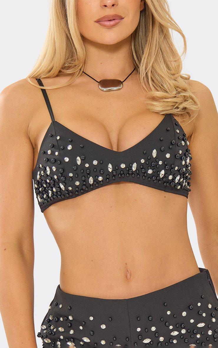 Strappy Embellished Bralet In Black