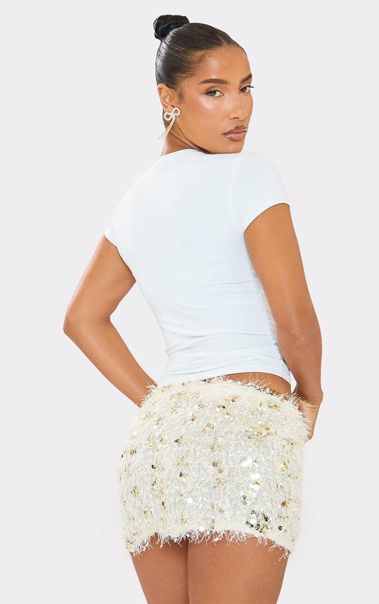 Mid Rise Micro Mini Skirt In Cream Floral Sequin
